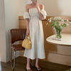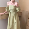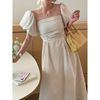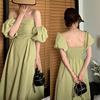 QOERLIN موضة فستان أنيق حفلة 2022 الصيف المرأة قصيرة الأكمام الهندسة محكم فساتين متوسطة الطول نفخة كم ساحة طوق
