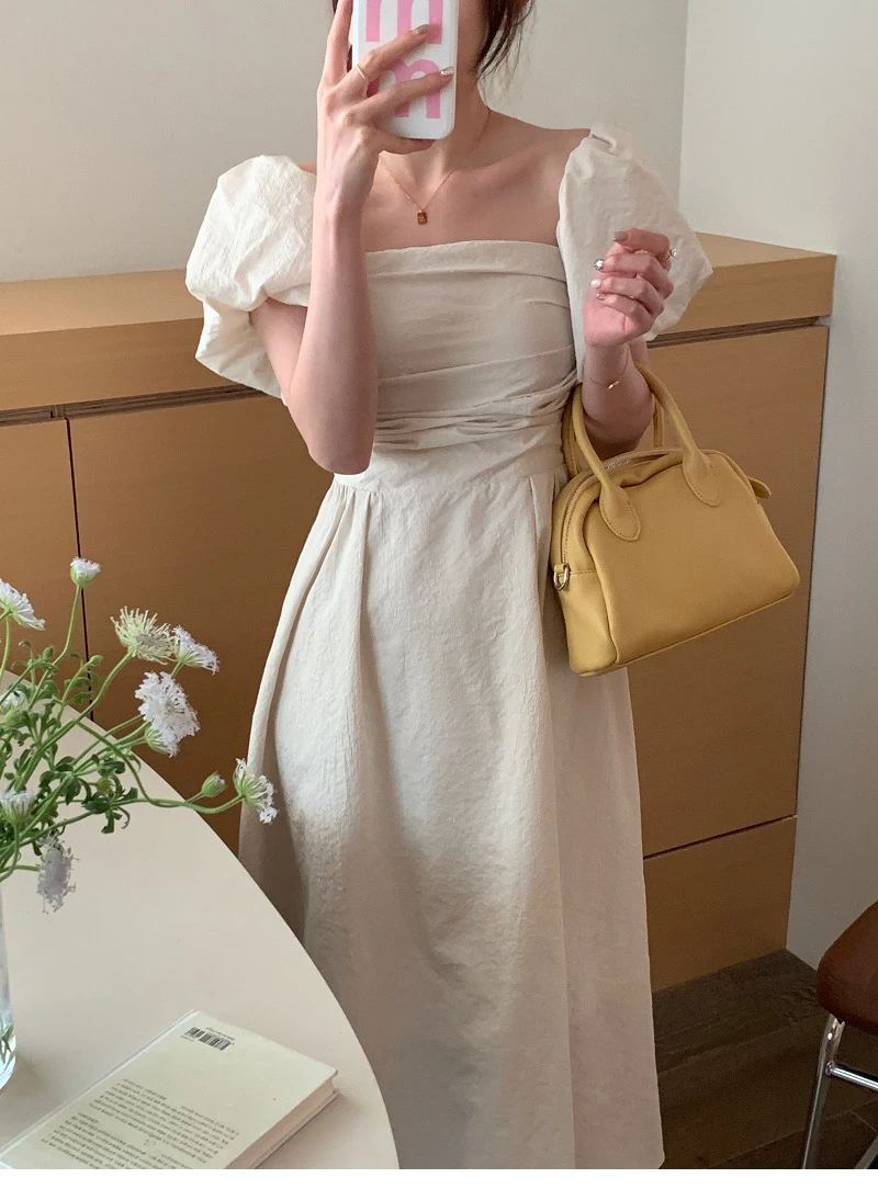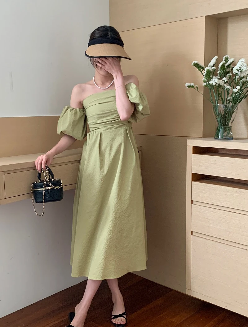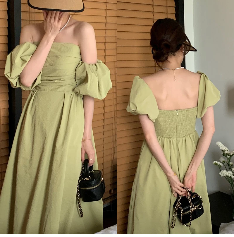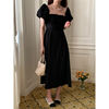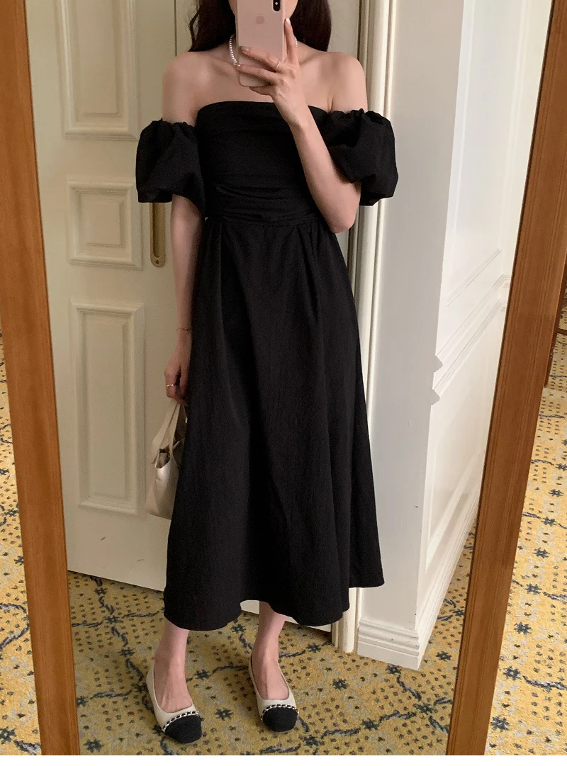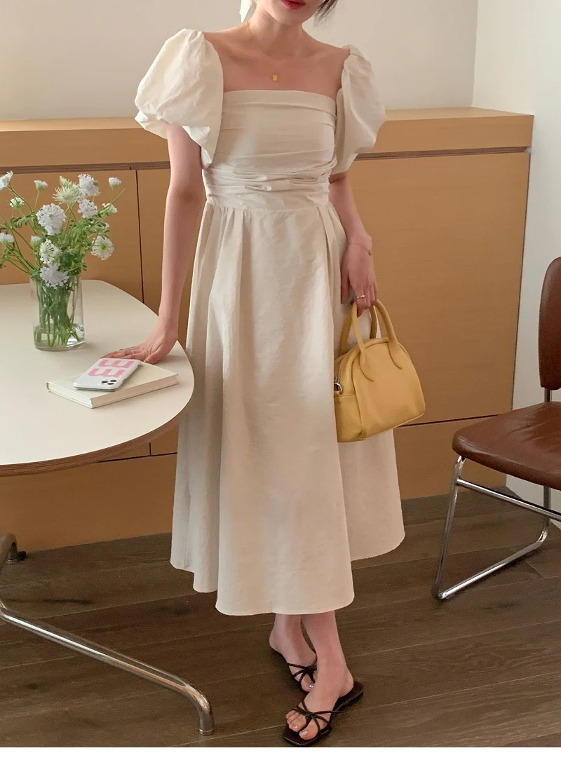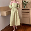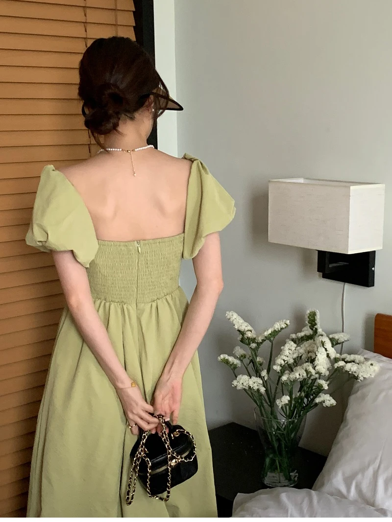 QOERLIN موضة فستان أنيق حفلة 2022 الصيف المرأة قصيرة الأكمام الهندسة محكم فساتين متوسطة الطول نفخة كم ساحة طوق