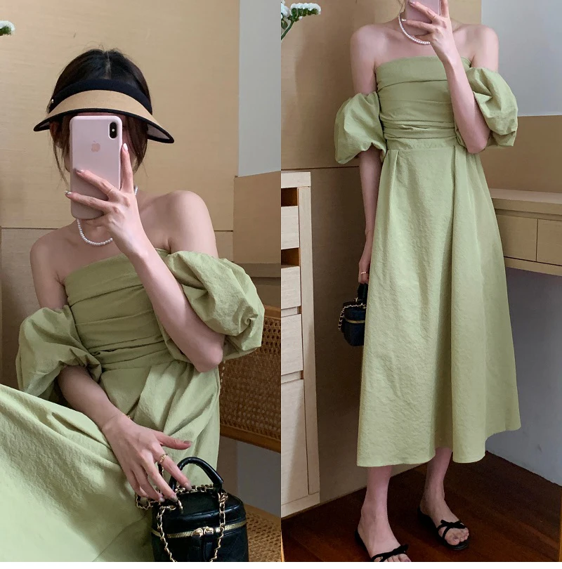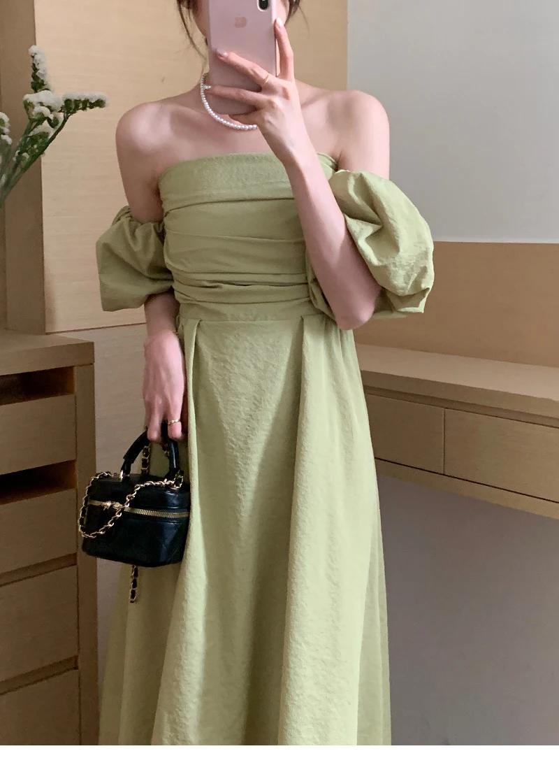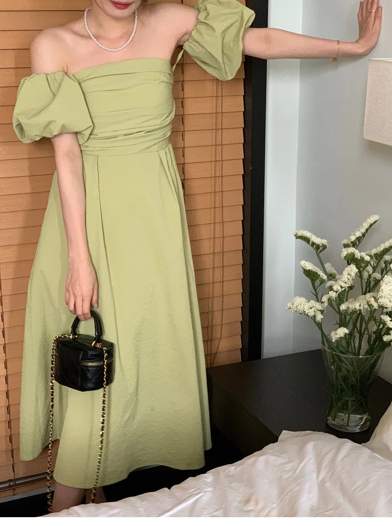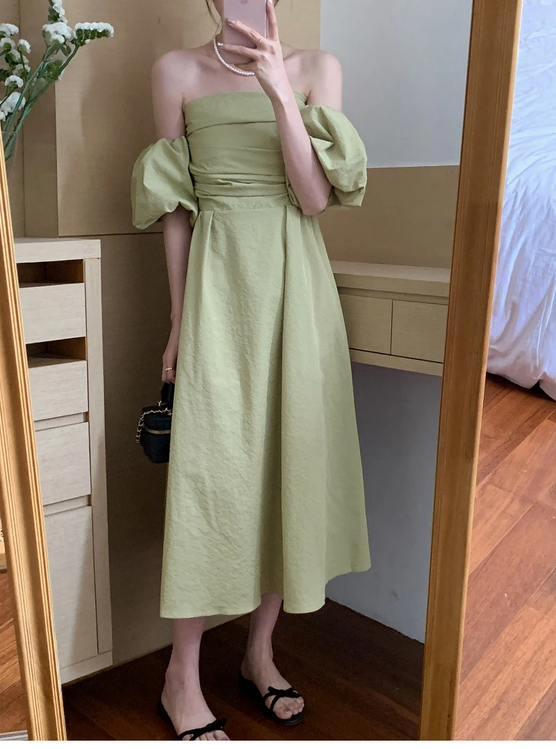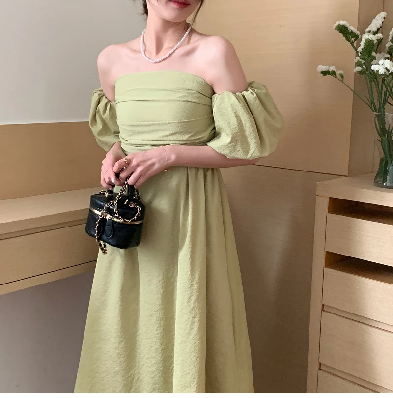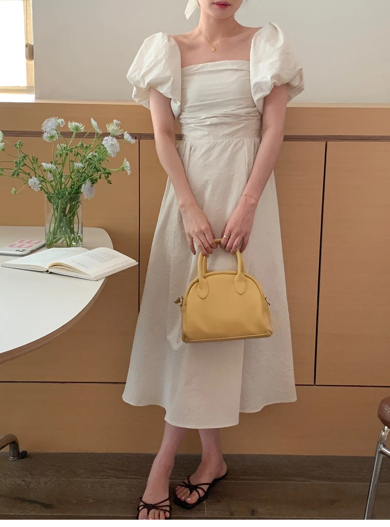 QOERLIN موضة فستان أنيق حفلة 2022 الصيف المرأة قصيرة الأكمام الهندسة محكم فساتين متوسطة الطول نفخة كم ساحة طوق