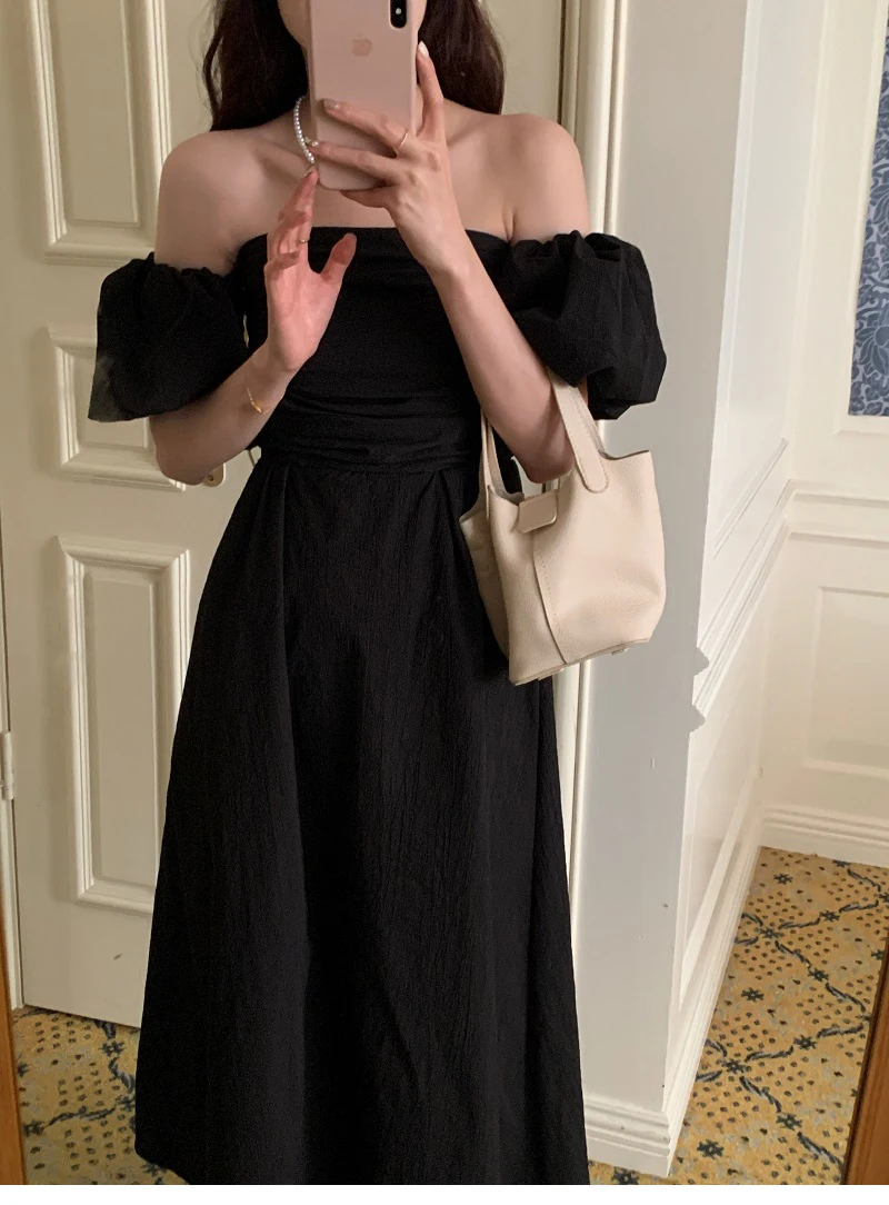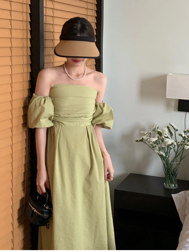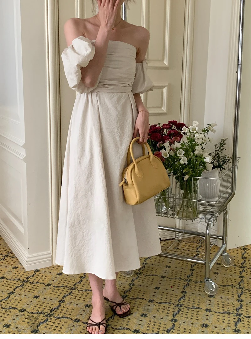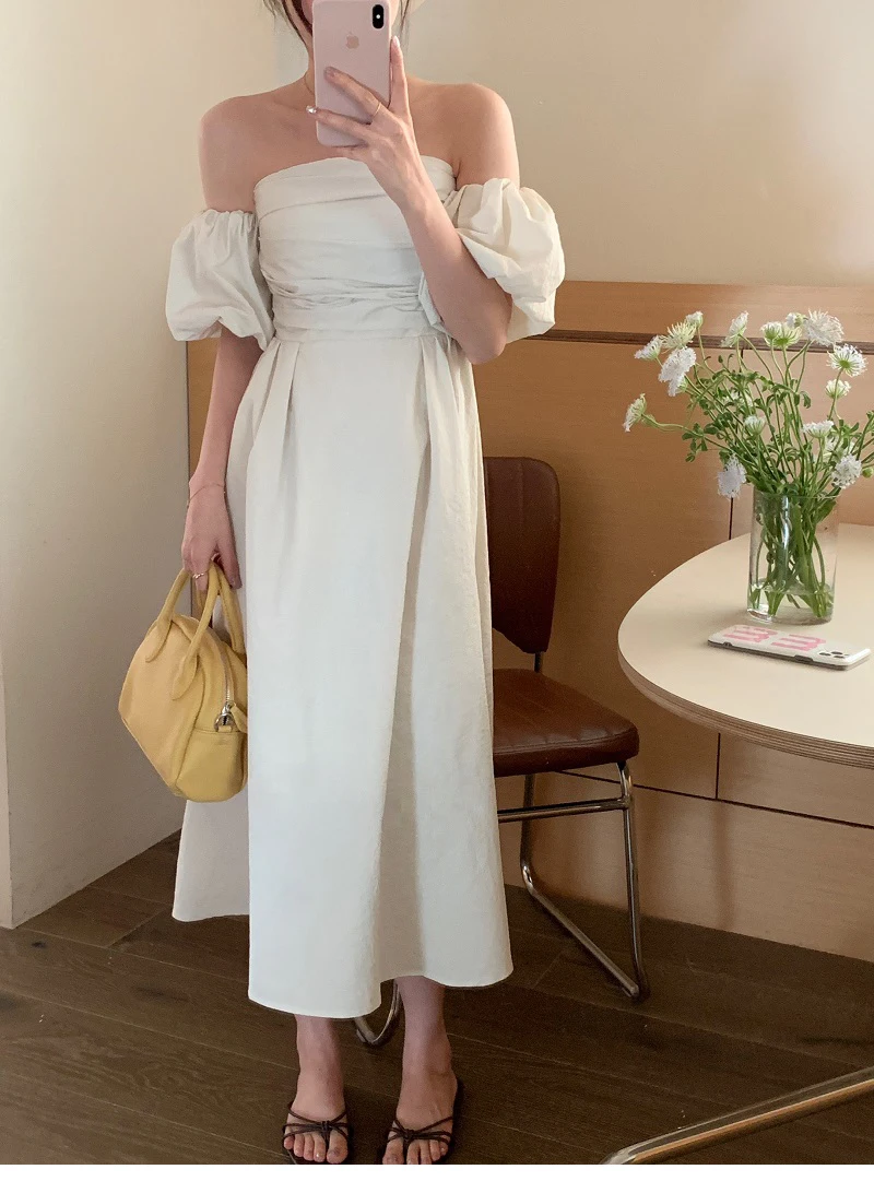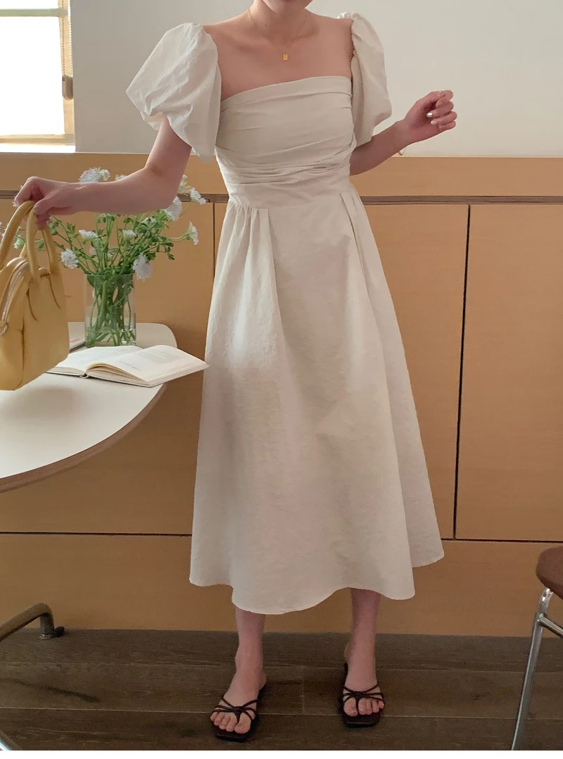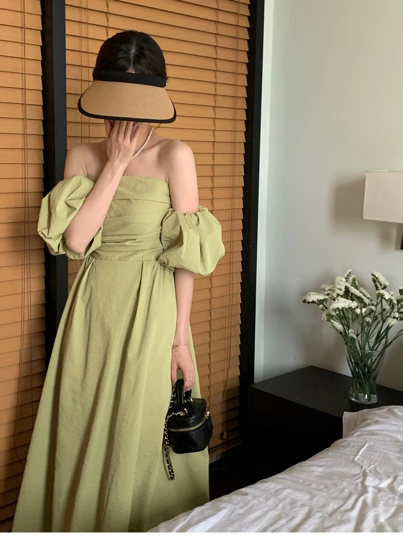 QOERLIN موضة فستان أنيق حفلة 2022 الصيف المرأة قصيرة الأكمام الهندسة محكم فساتين متوسطة الطول نفخة كم ساحة طوق