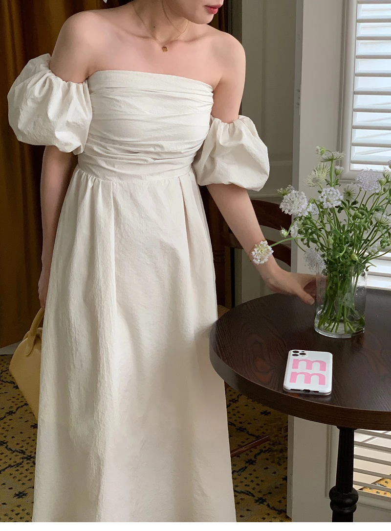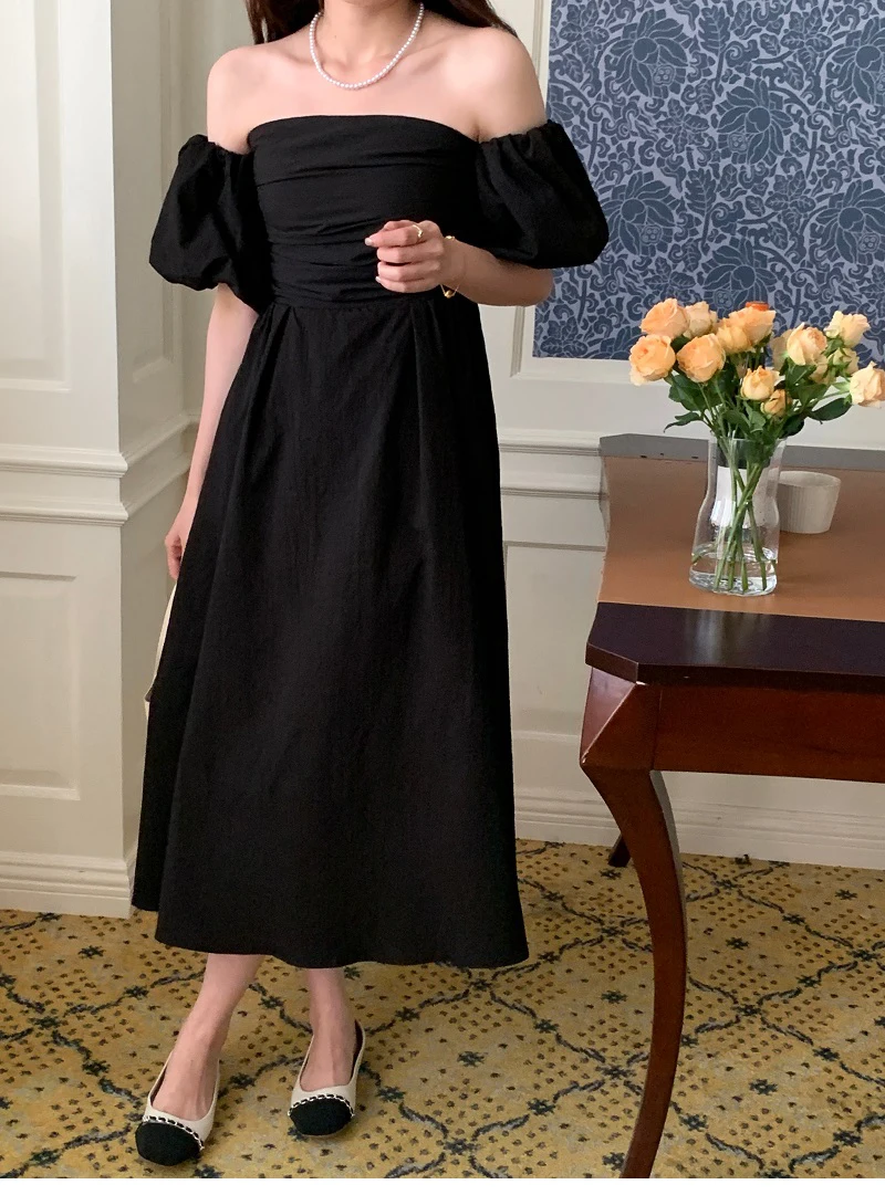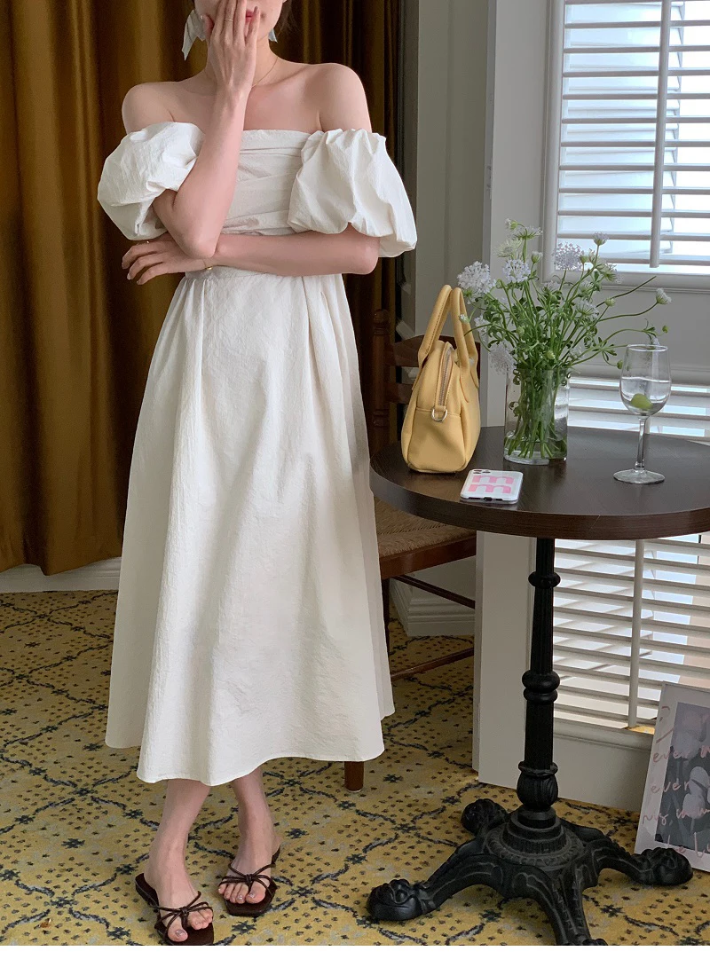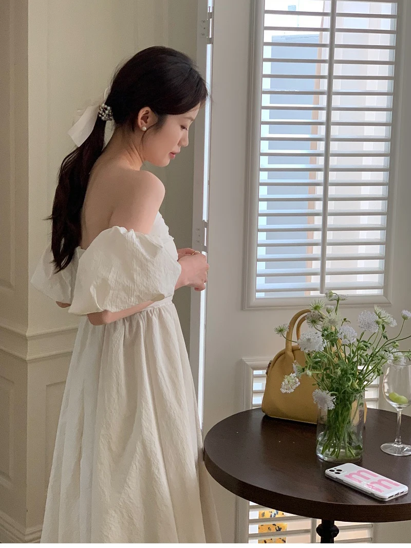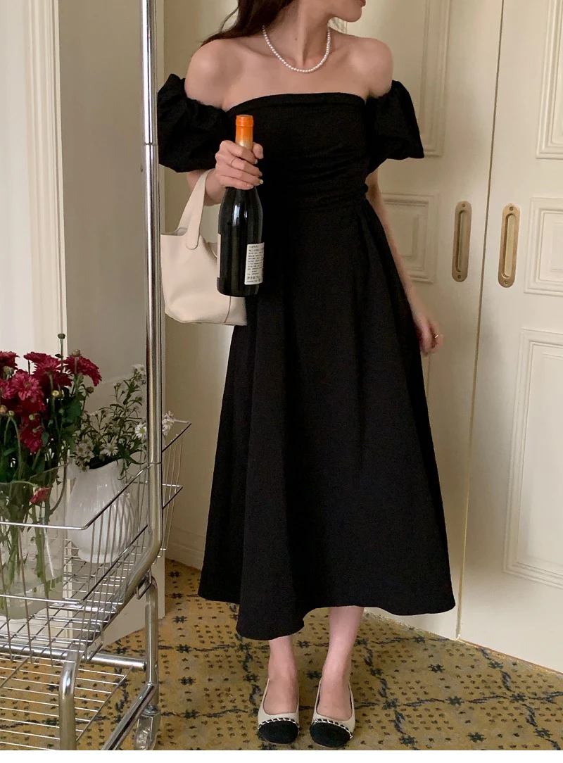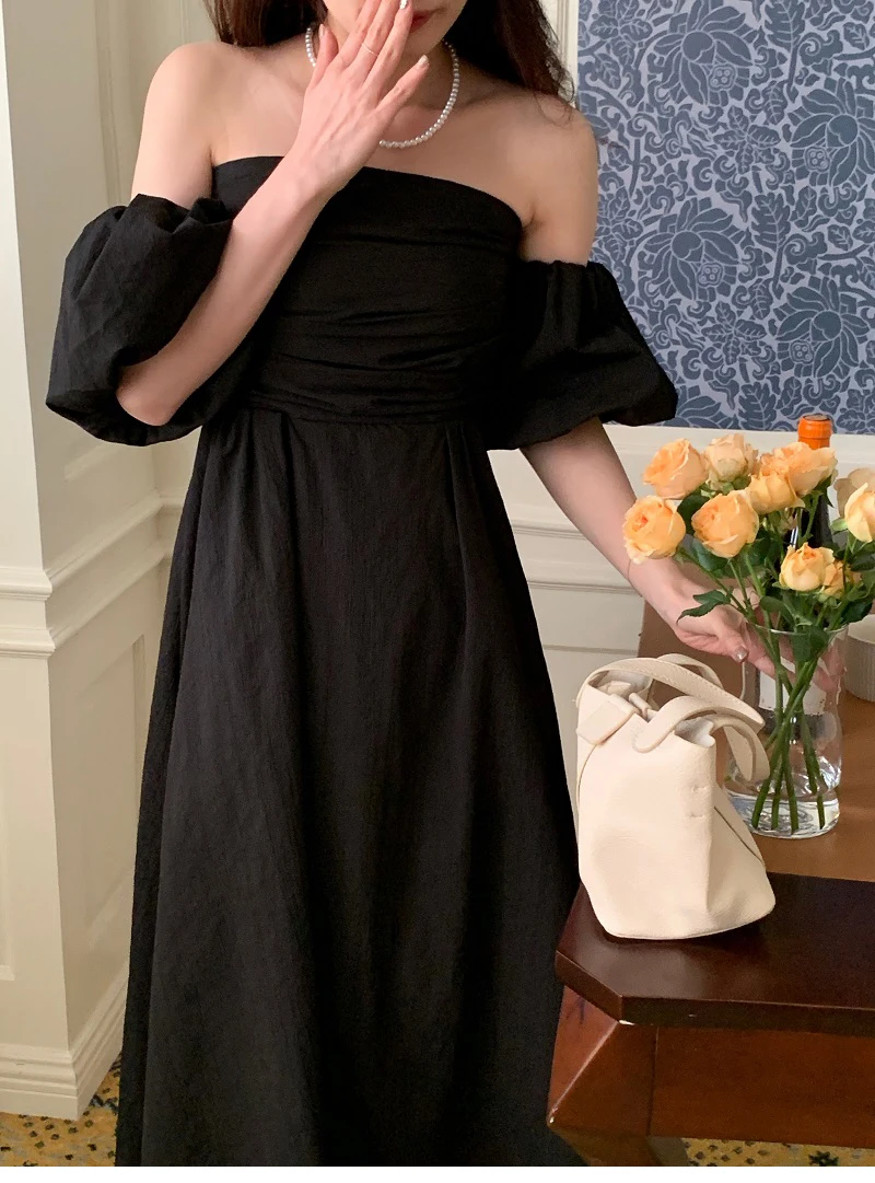 QOERLIN موضة فستان أنيق حفلة 2022 الصيف المرأة قصيرة الأكمام الهندسة محكم فساتين متوسطة الطول نفخة كم ساحة طوق