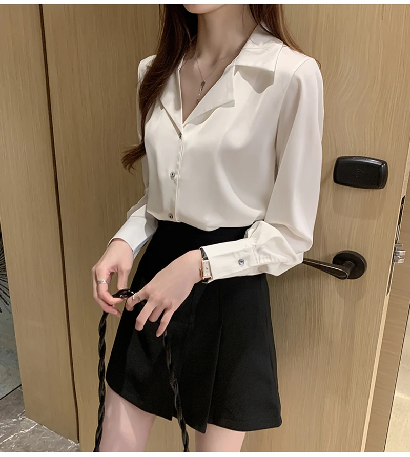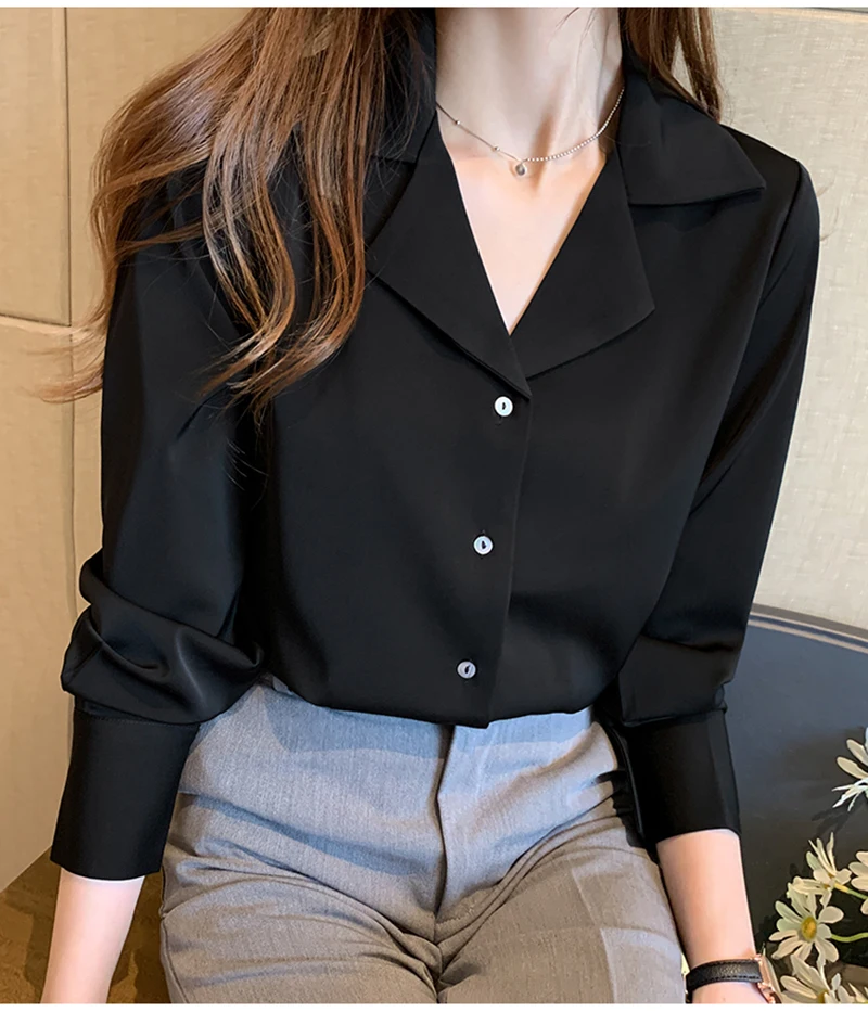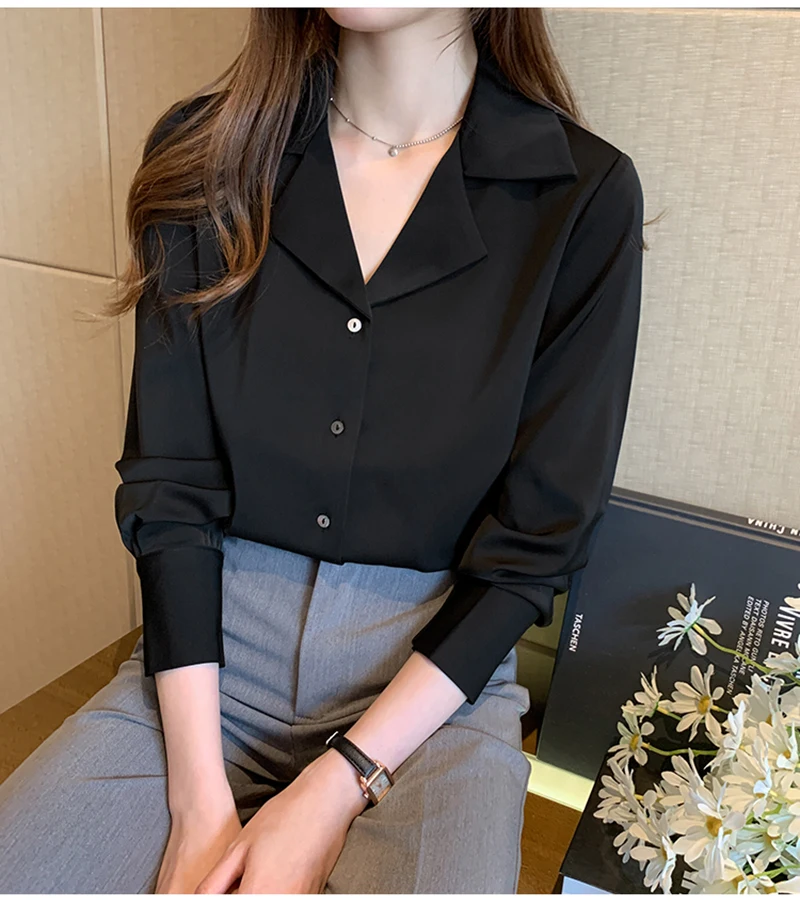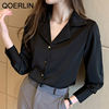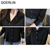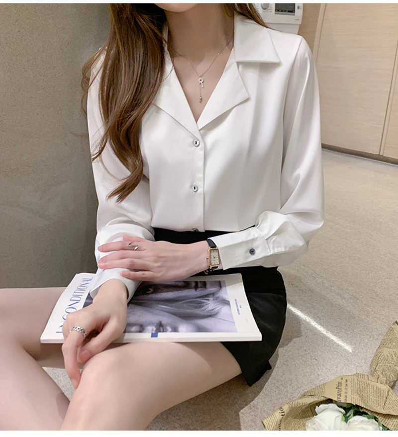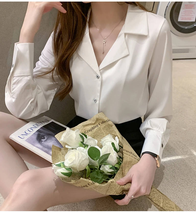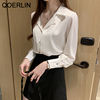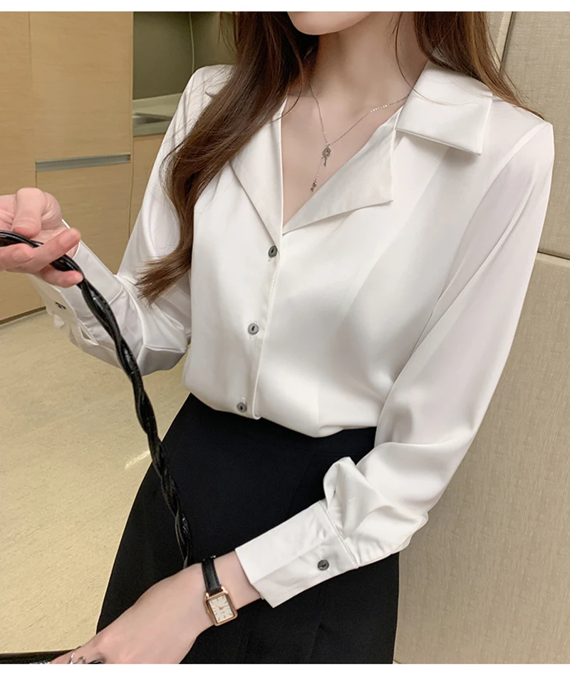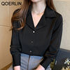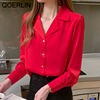 QOERLIN موضة قمصان بيضاء الحرير النساء البلوزات مكتب سيدة الساتان بلوزة طويلة الأكمام بلوزة OL دعوى طوق بلوزات السيدات عادية