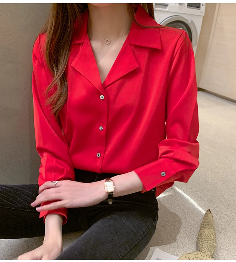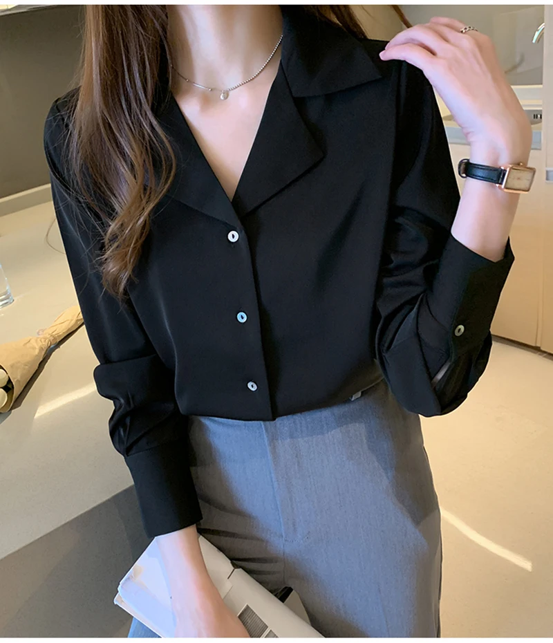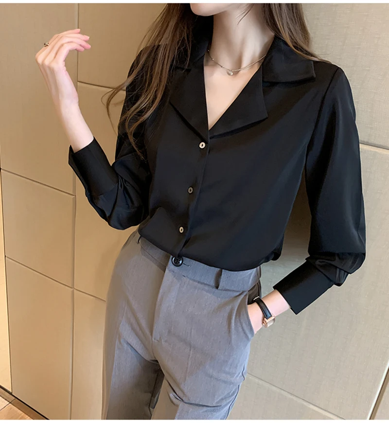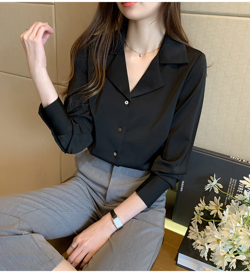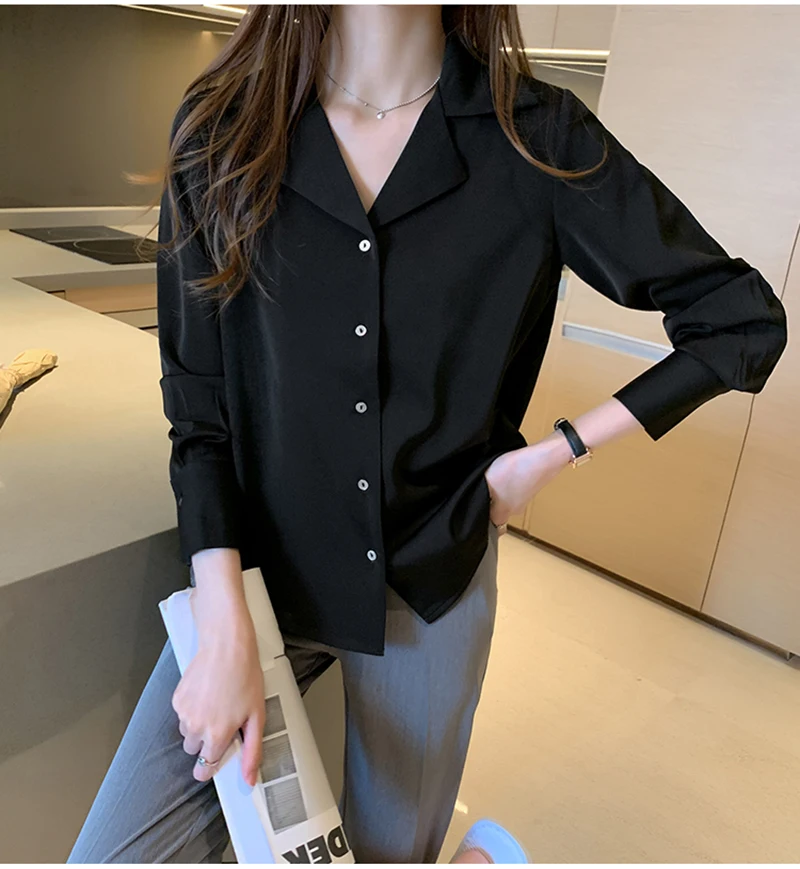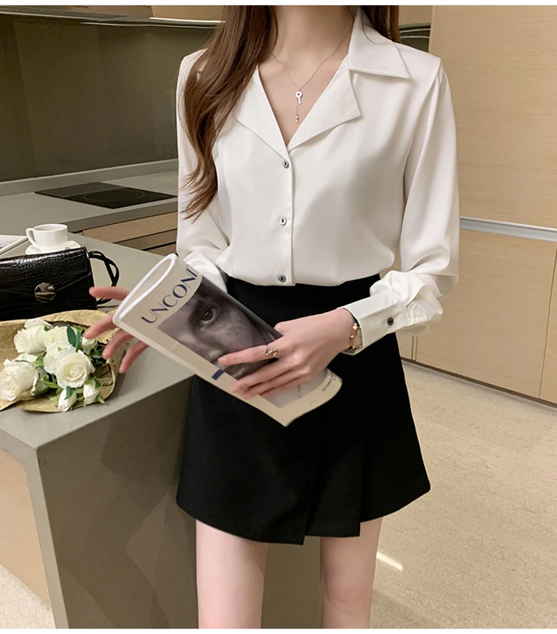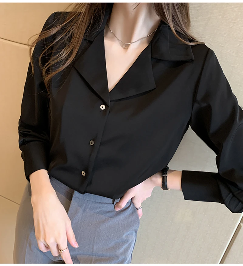 QOERLIN موضة قمصان بيضاء الحرير النساء البلوزات مكتب سيدة الساتان بلوزة طويلة الأكمام بلوزة OL دعوى طوق بلوزات السيدات عادية