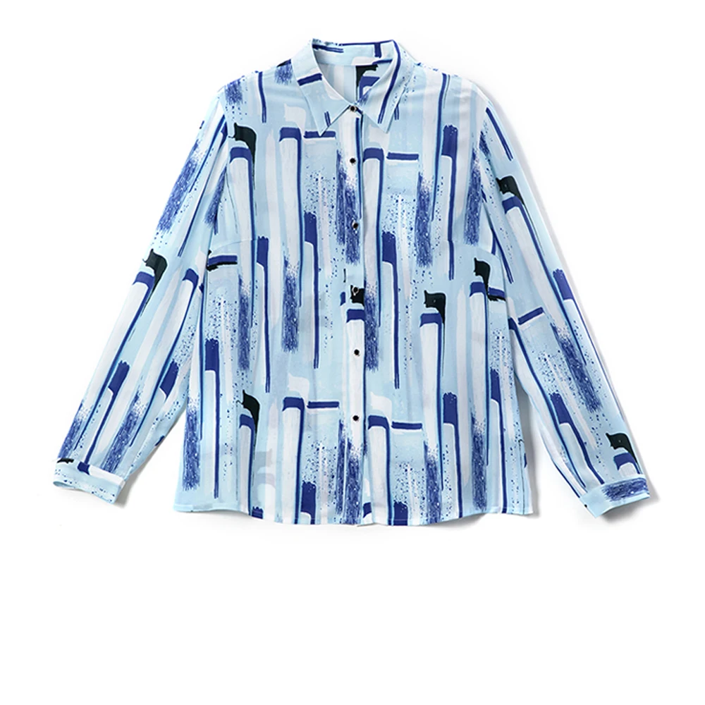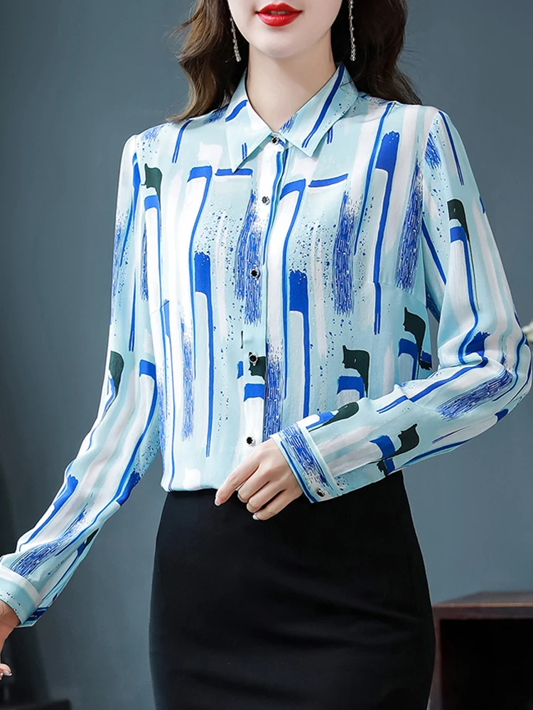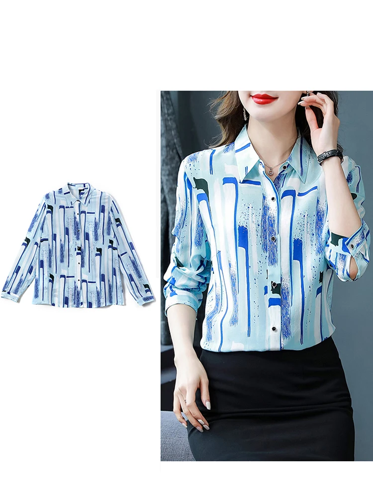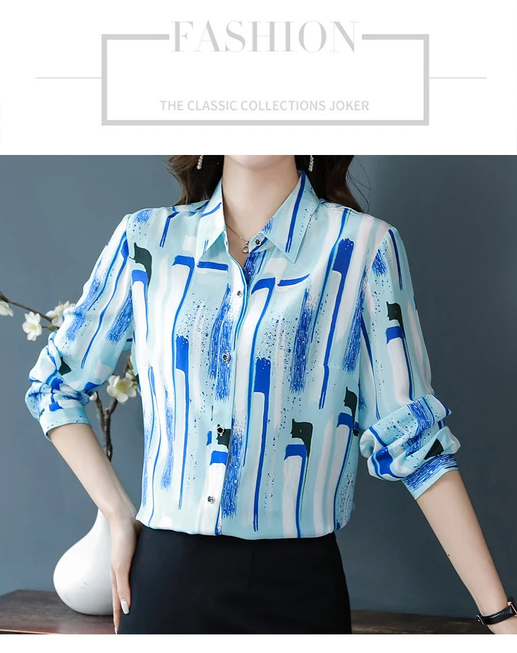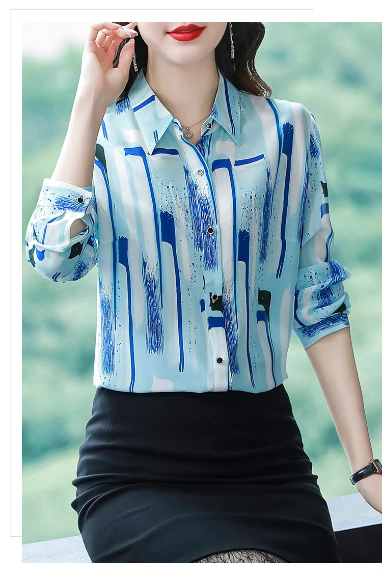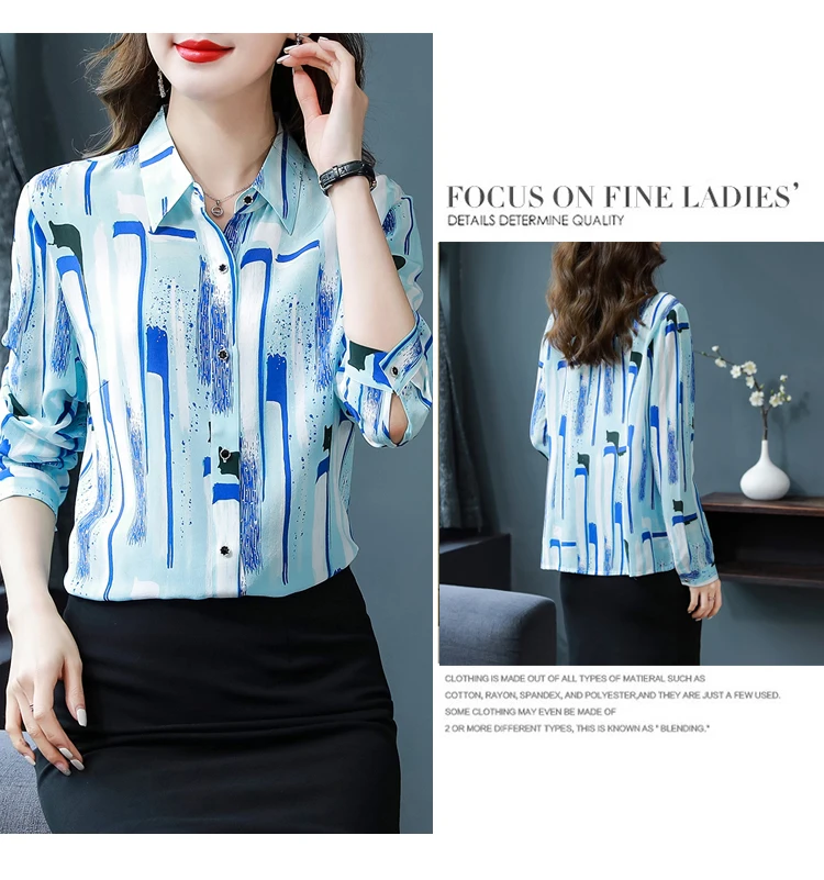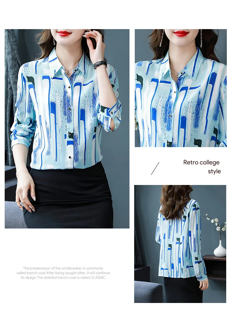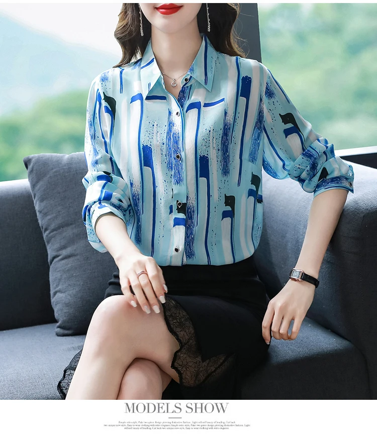 QoerliN 2022 الخريف أنيقة زر على الموضة حتى قميص حريري بلوزة خمر المرأة OL نمط سيدة طويلة الأكمام الإناث فضفاضة قمصان بولو