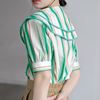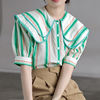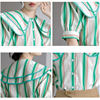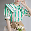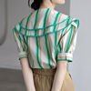 QOERLIN 2022 الصيف بلوزة شيفون قصيرة الأكمام النساء قمصان كبيرة بدوره إلى أسفل طوق فضفاض واحدة الصدر الأخضر مخطط القمم قميص