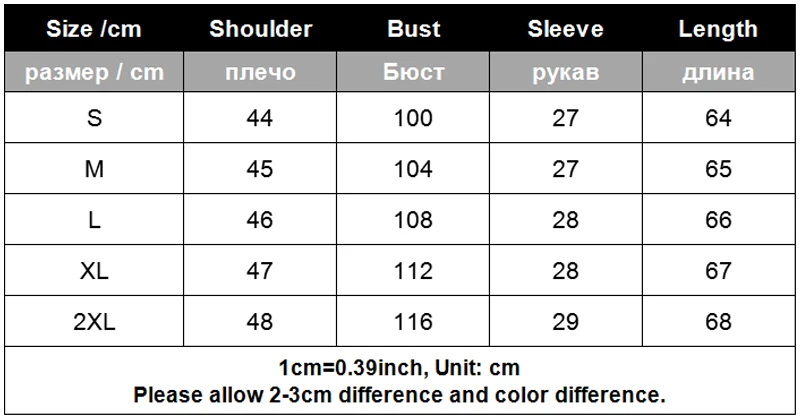 الحجمعبر الكتف (سم)عرض الصدر (سم)طول الكم (سم)الجسم طول