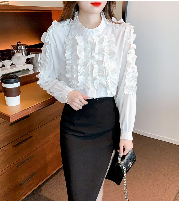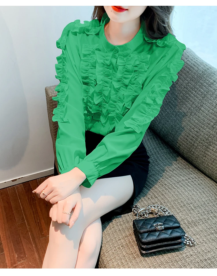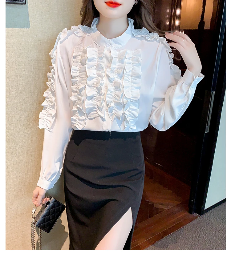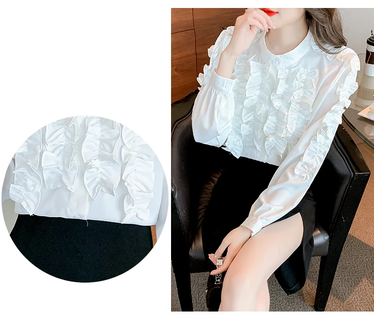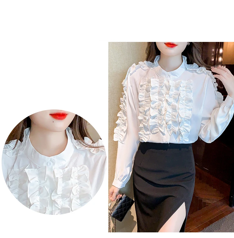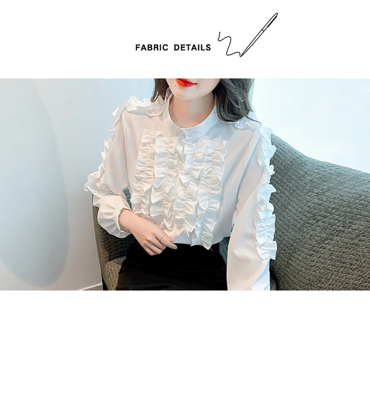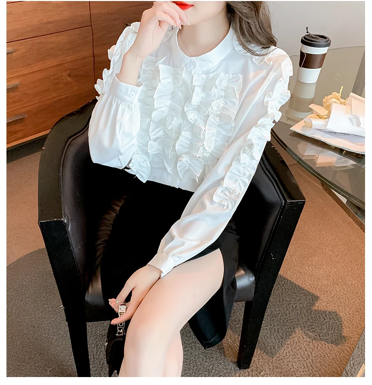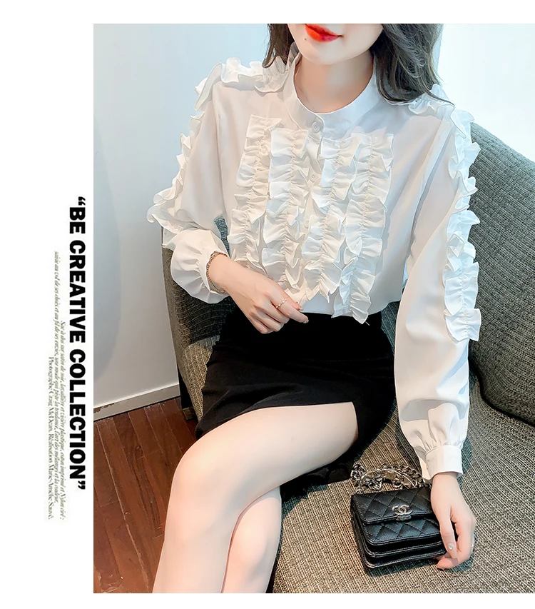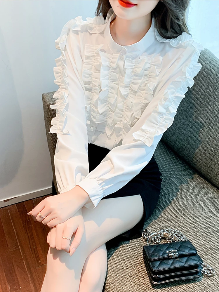 QOERLIN 2022 موضة شيك الفطر حافة الكورية قميص المرأة الخريف طويلة الأكمام بلوزة قطن السيدات بلايز أنيقة OL زر القمصان