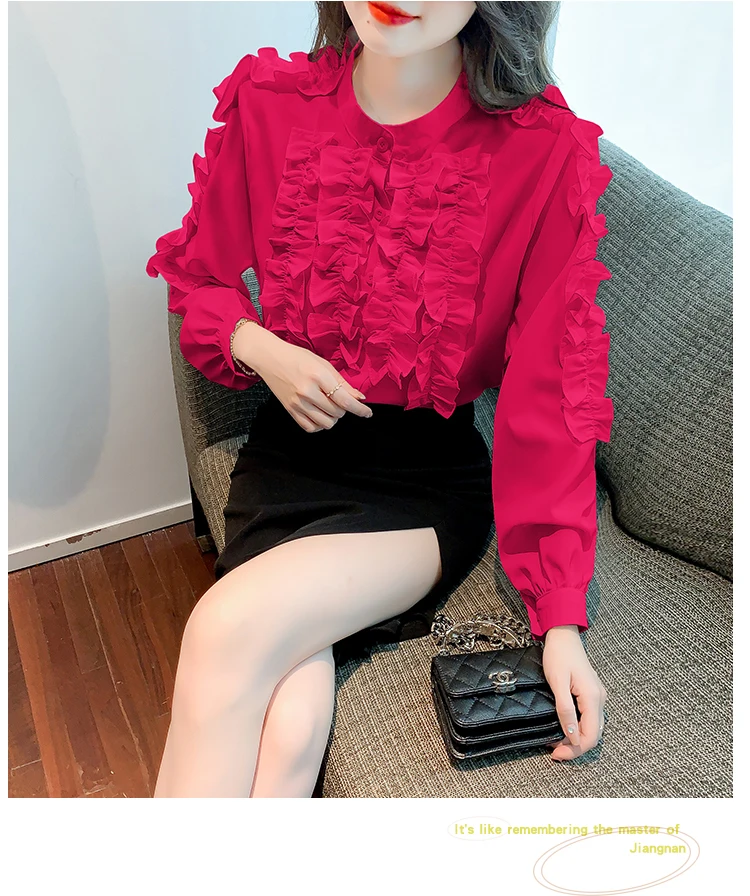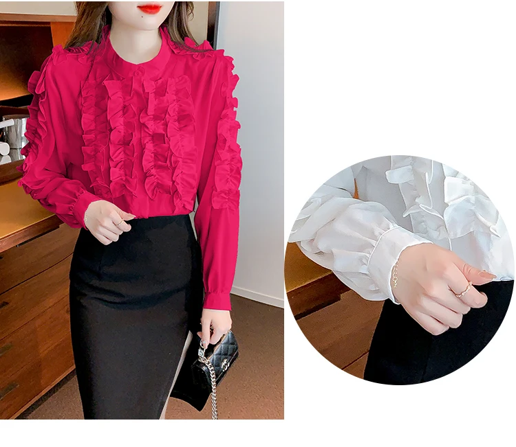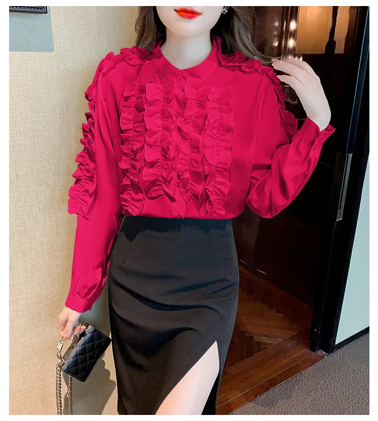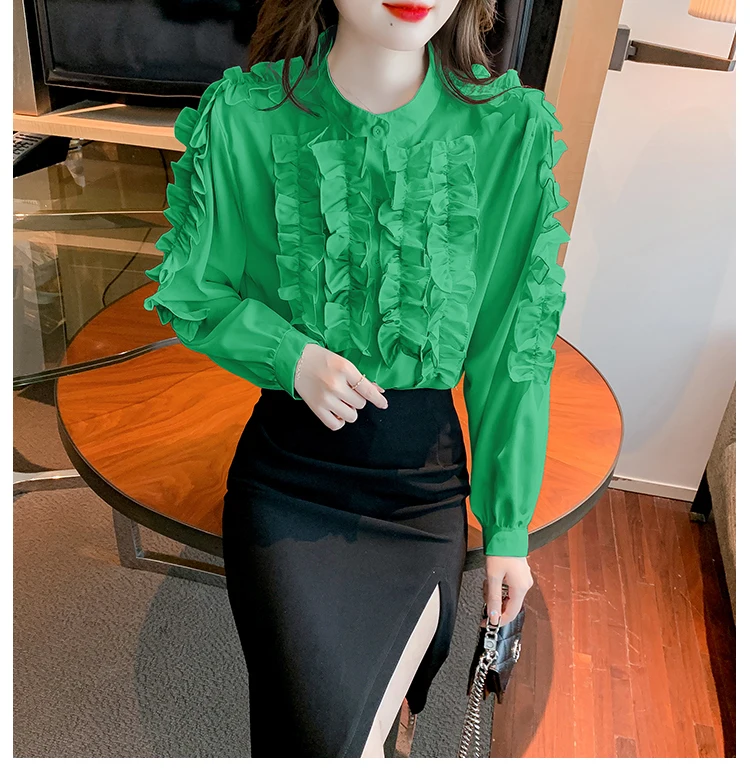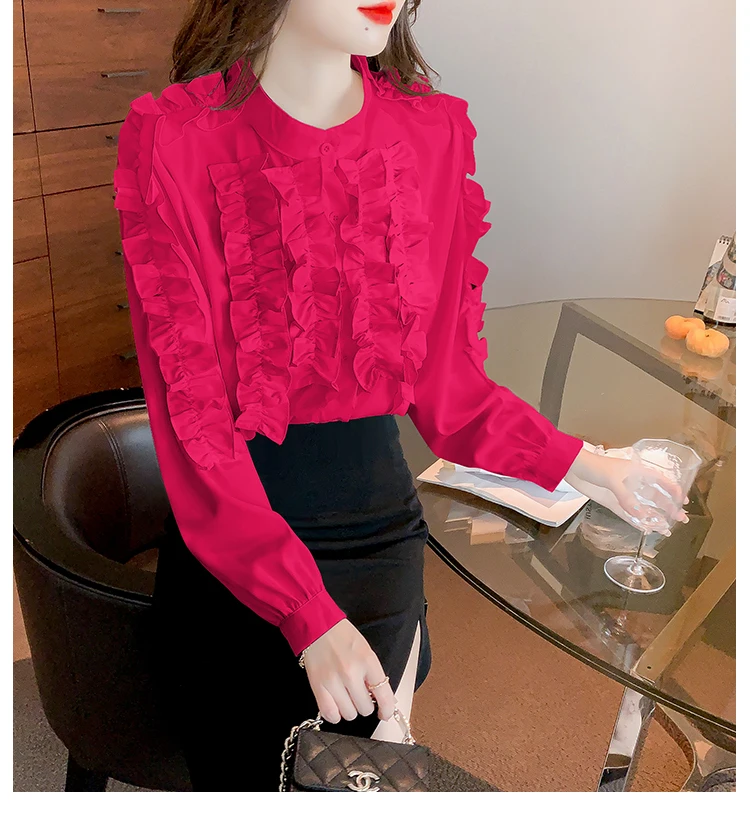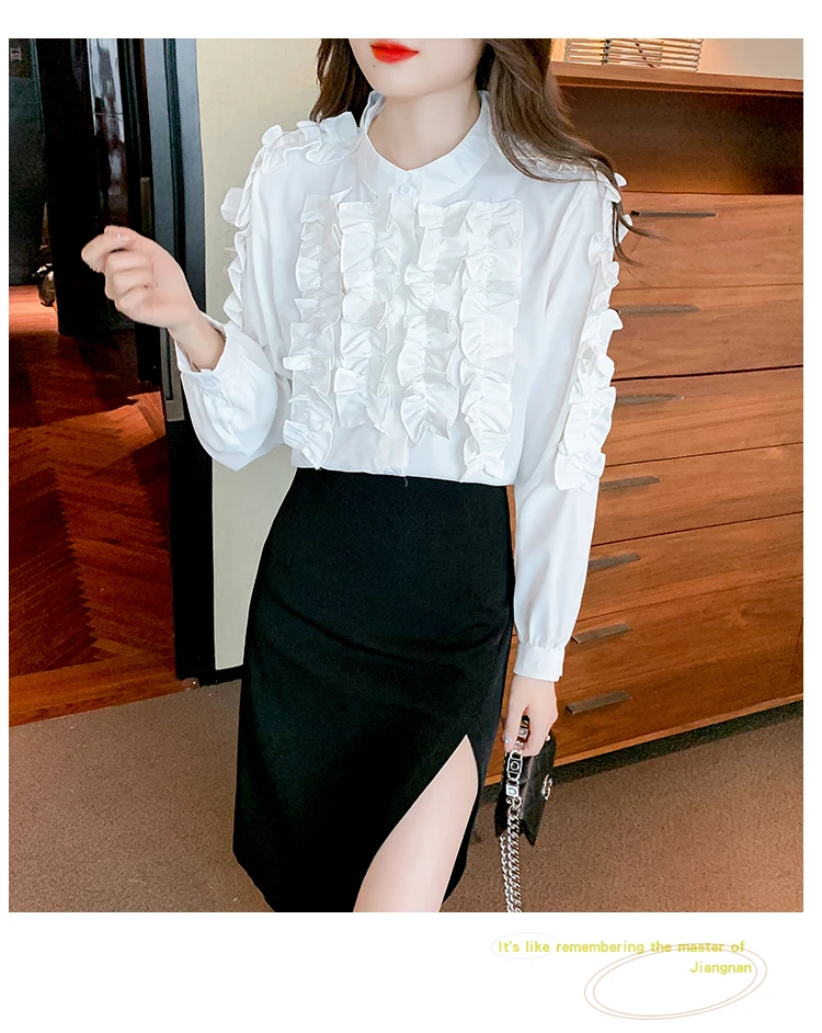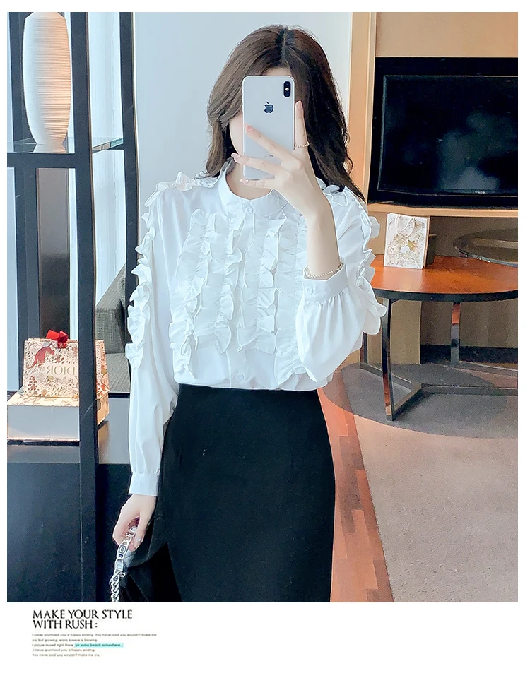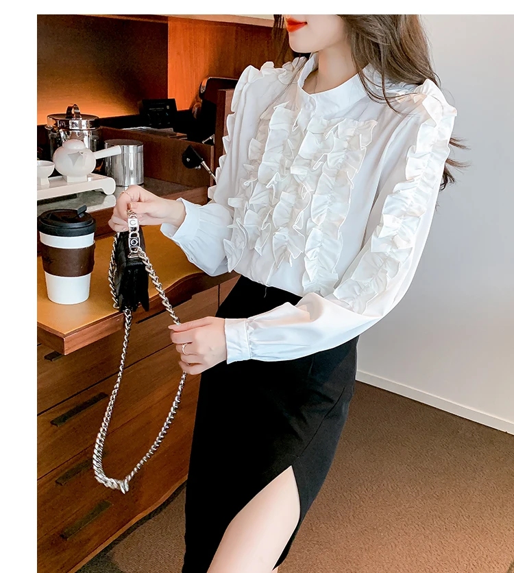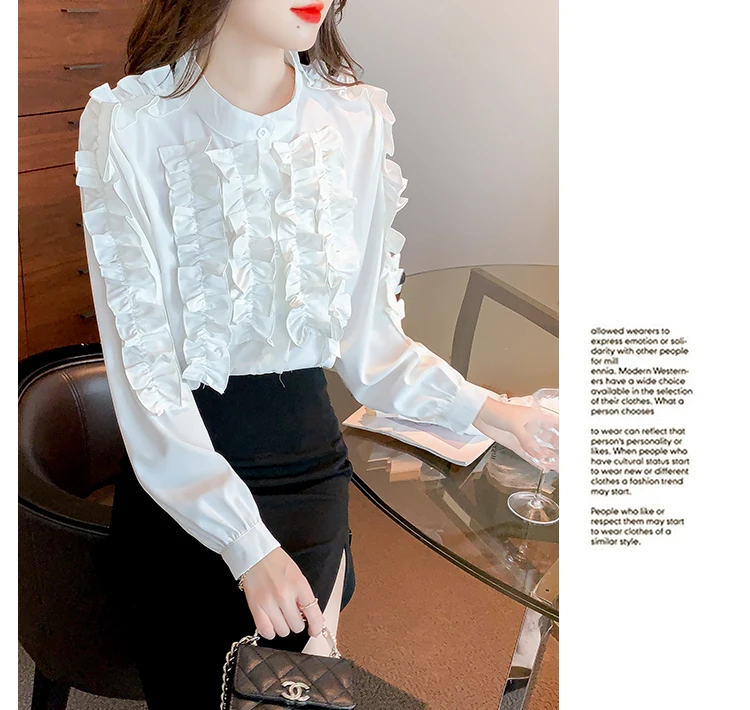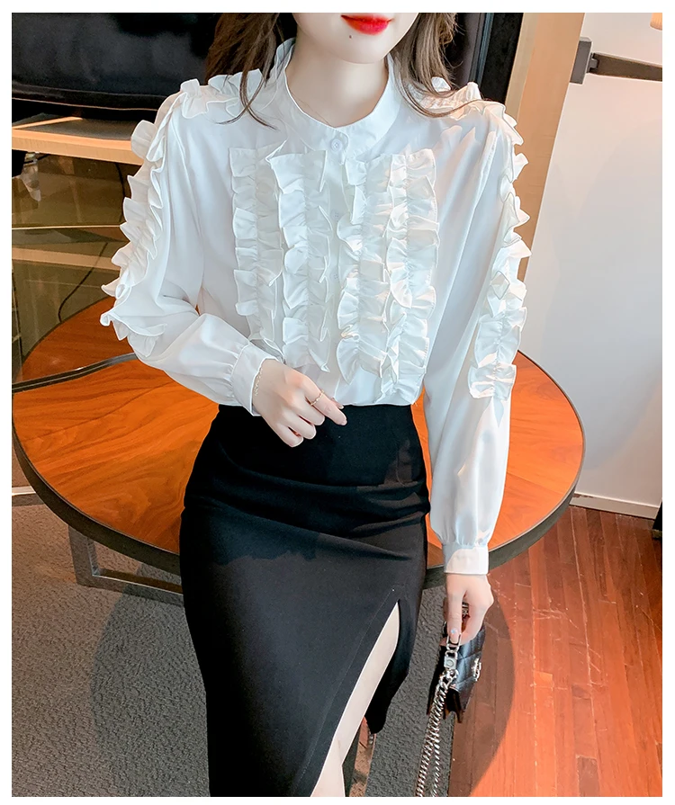 QOERLIN 2022 موضة شيك الفطر حافة الكورية قميص المرأة الخريف طويلة الأكمام بلوزة قطن السيدات بلايز أنيقة OL زر القمصان