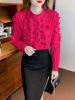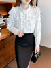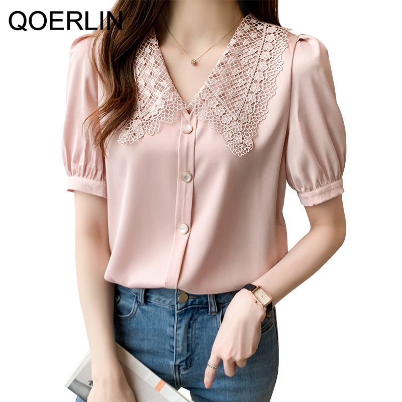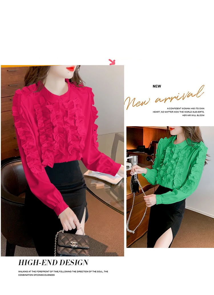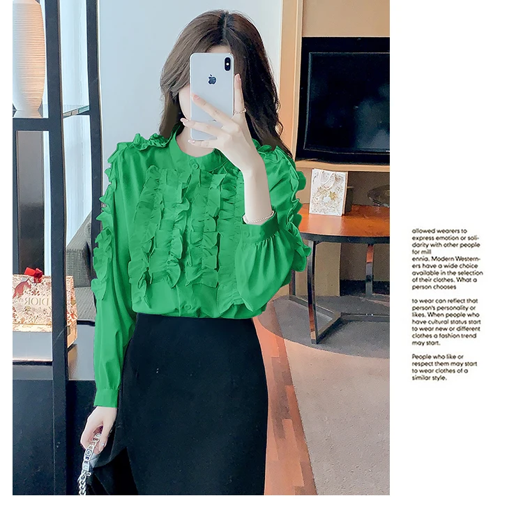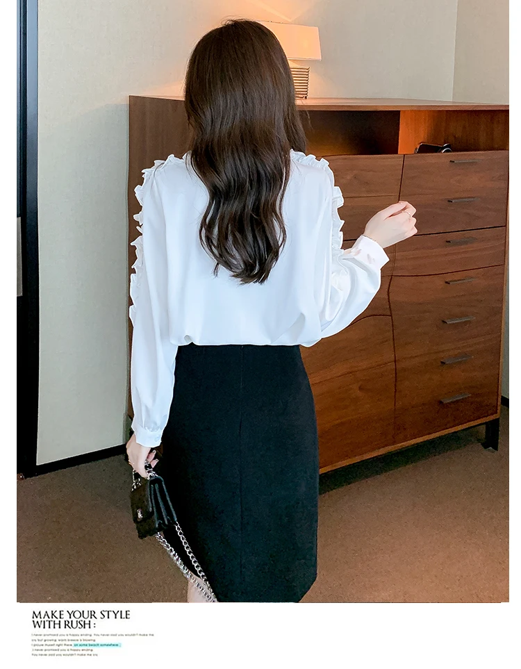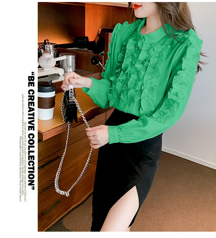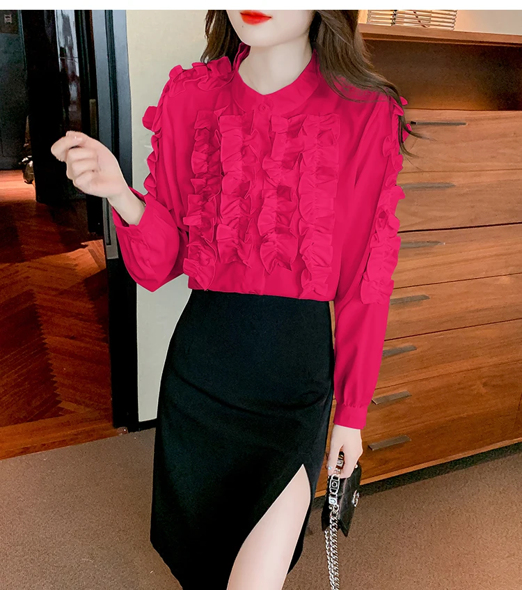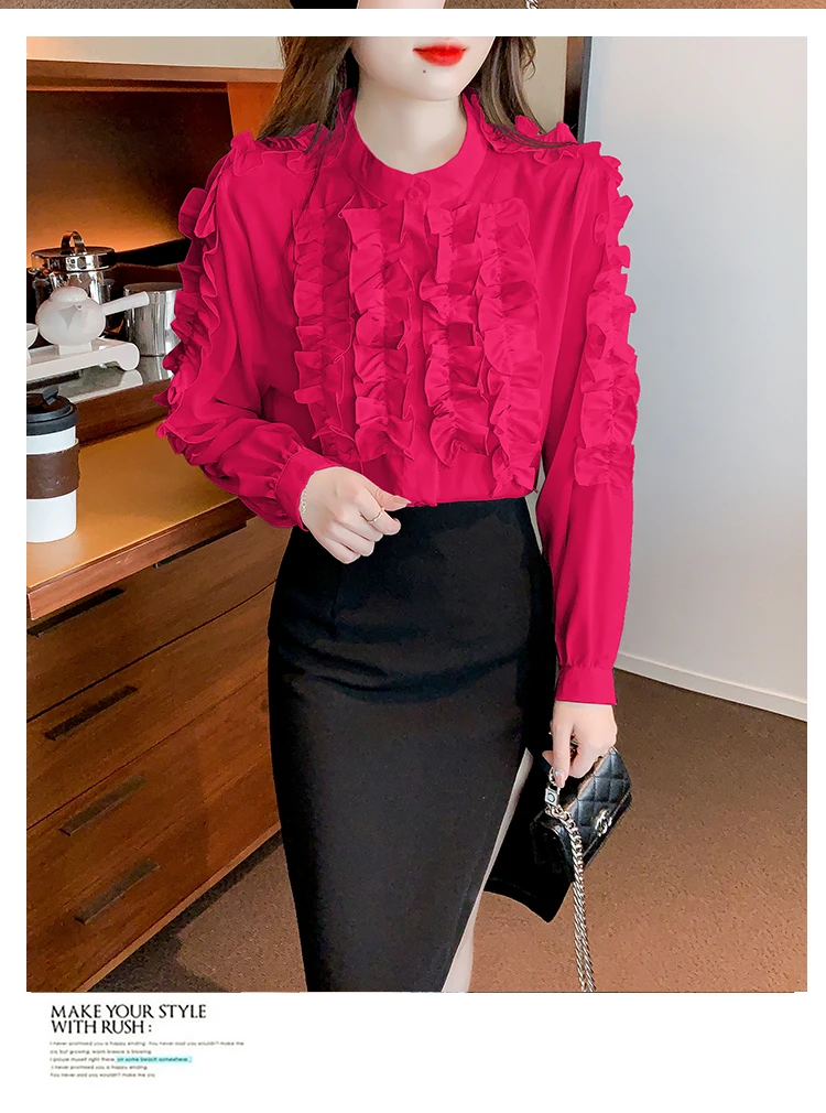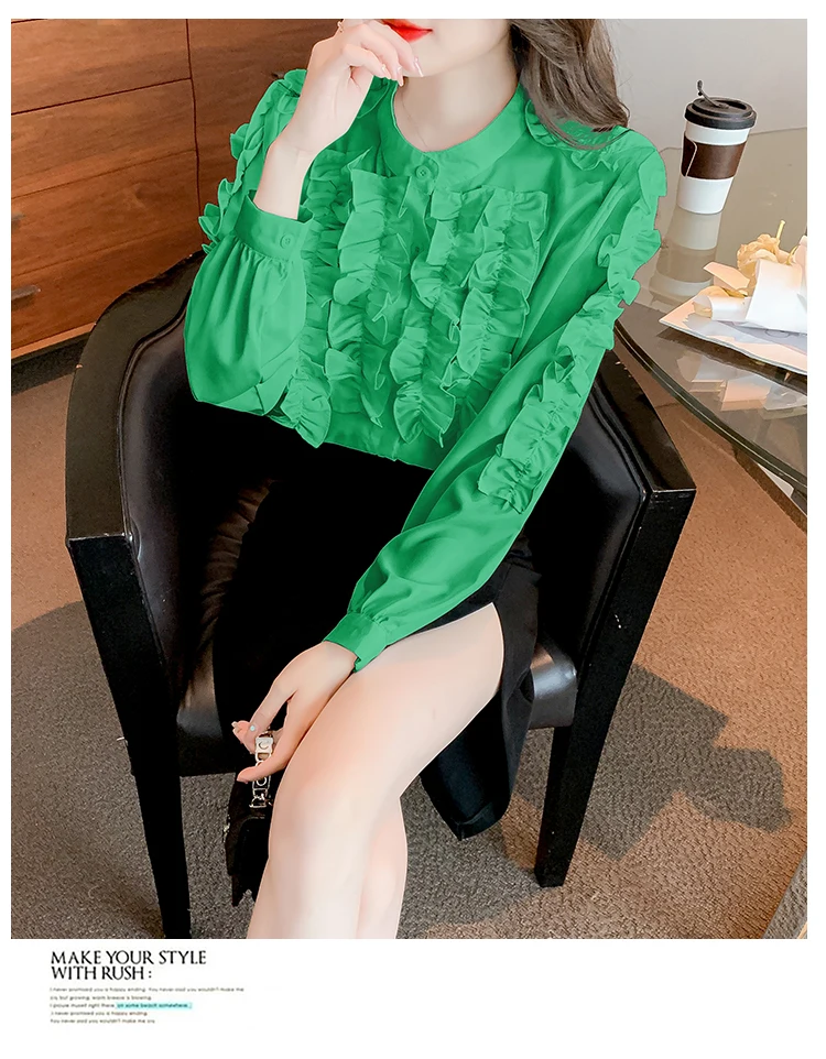 QOERLIN 2022 موضة شيك الفطر حافة الكورية قميص المرأة الخريف طويلة الأكمام بلوزة قطن السيدات بلايز أنيقة OL زر القمصان