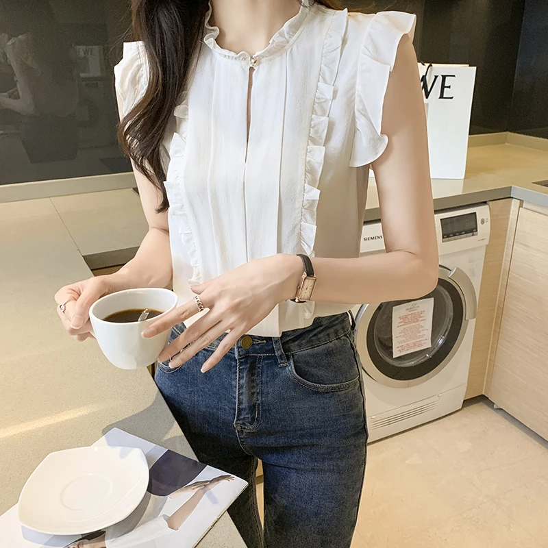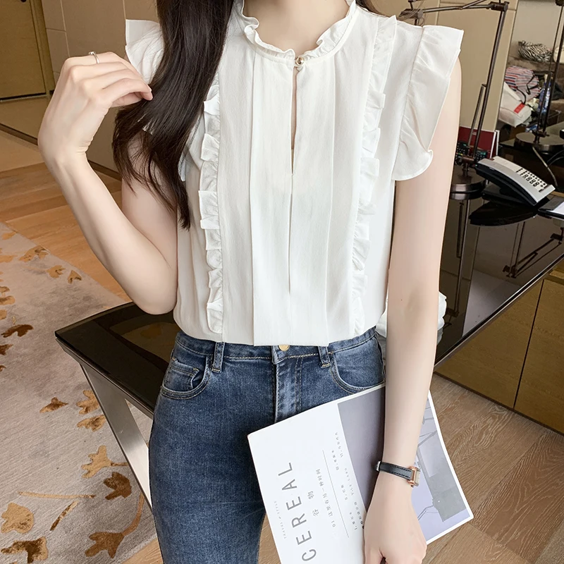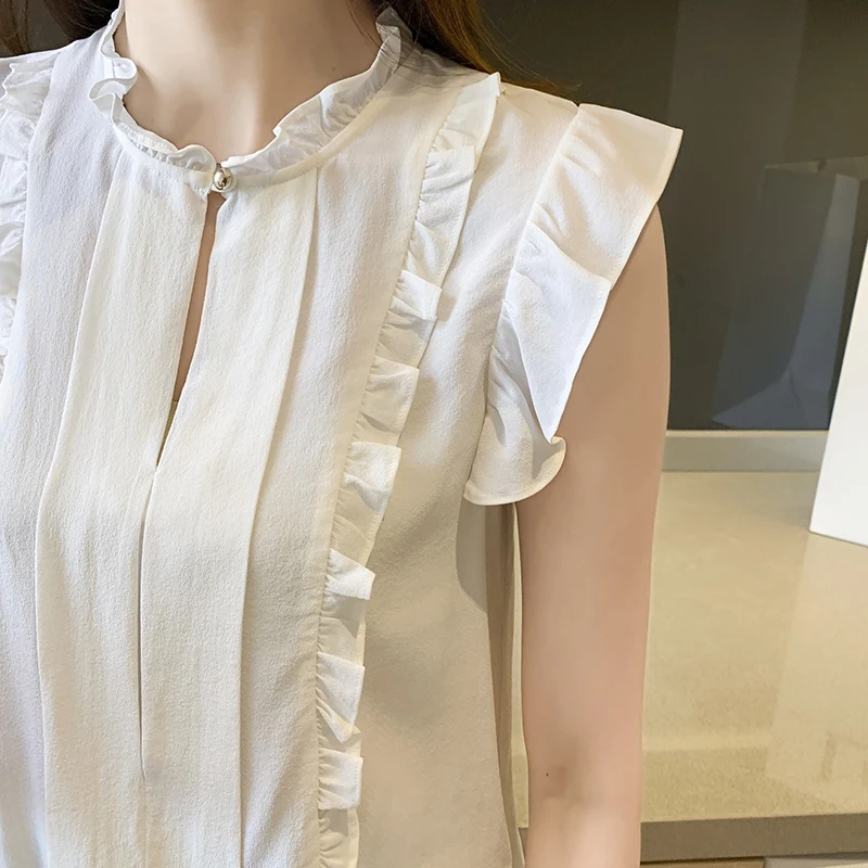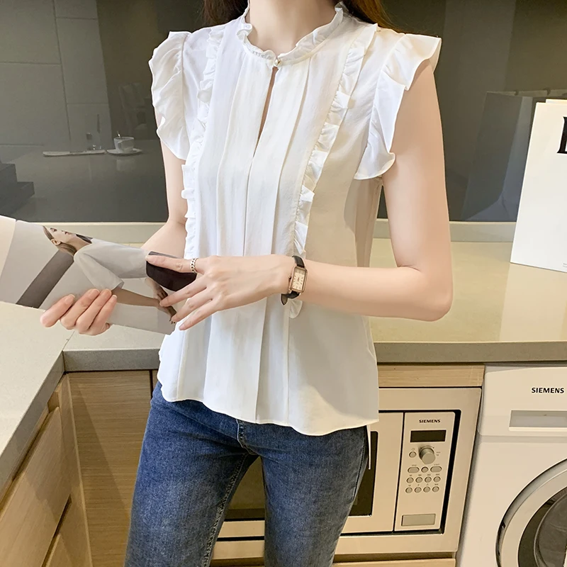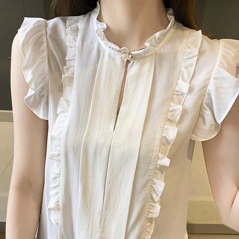 QOERLIN OL نمط أكمام قميص كشكش 2022 صيف جديد أبيض نقي الحلو الفطر طوق قميص تانك بلوزة الإناث الستر kamas