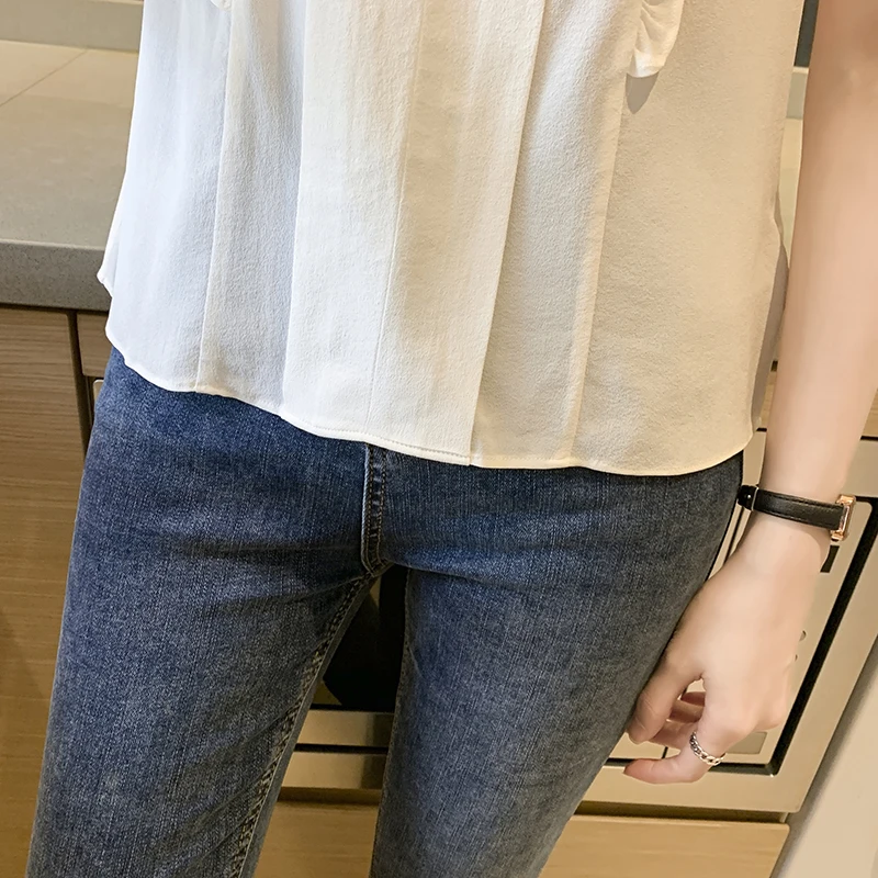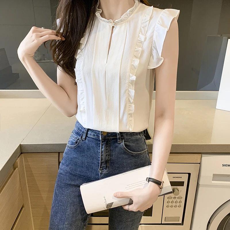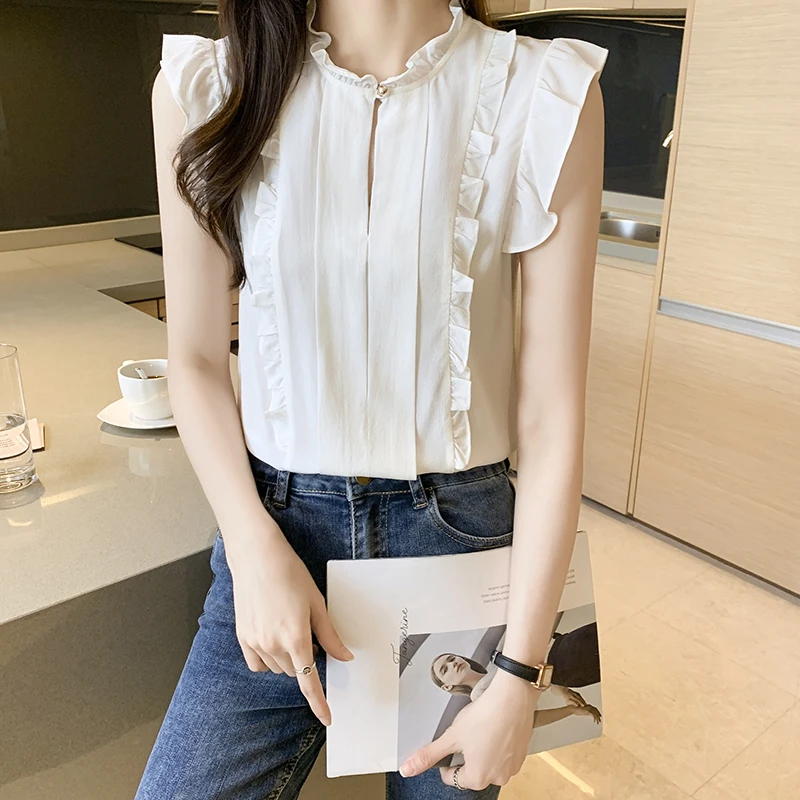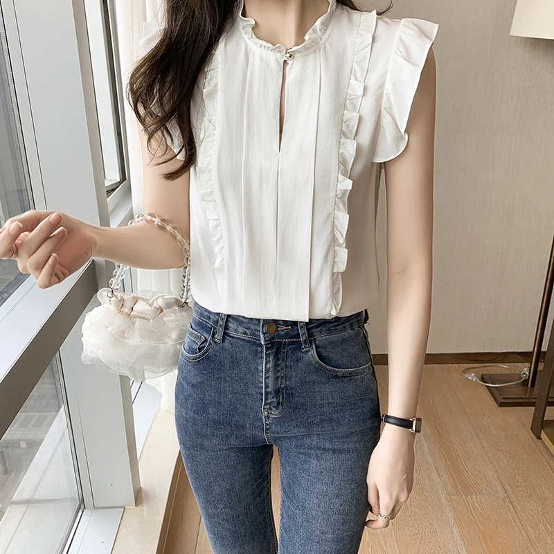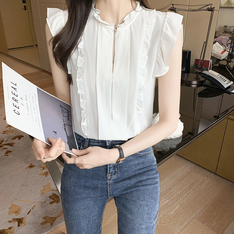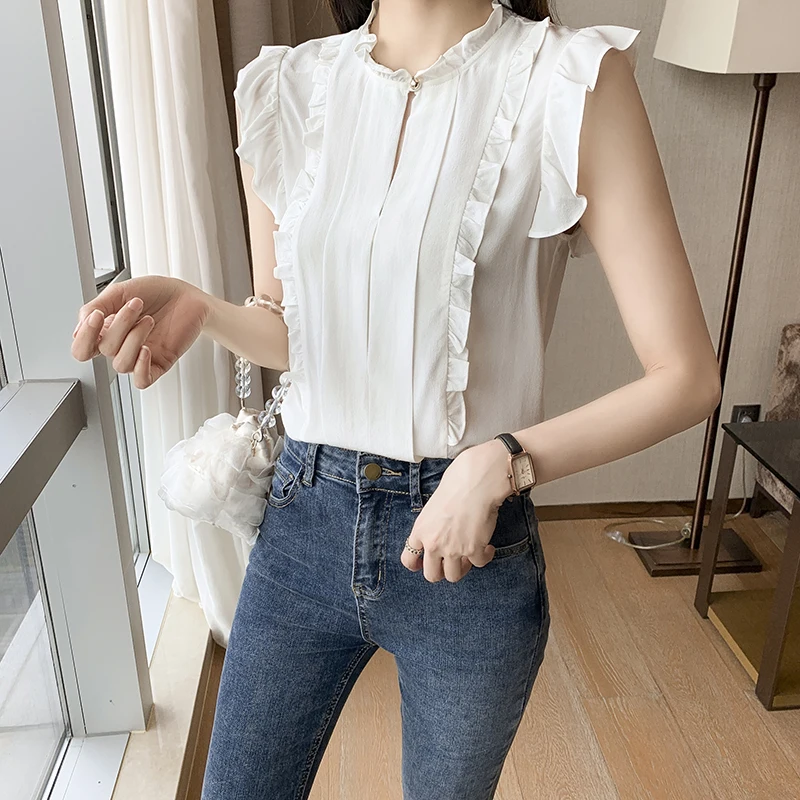 QOERLIN OL نمط أكمام قميص كشكش 2022 صيف جديد أبيض نقي الحلو الفطر طوق قميص تانك بلوزة الإناث الستر kamas