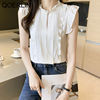 QOERLIN OL نمط أكمام قميص كشكش 2022 صيف جديد أبيض نقي الحلو الفطر طوق قميص تانك بلوزة الإناث الستر kamas
