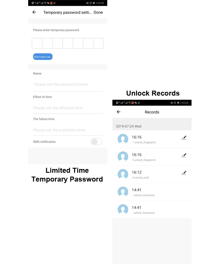 فتح الوضع: التطبيق/بصمة/كلمة المرور/البطاقة الذكية/مفتاح