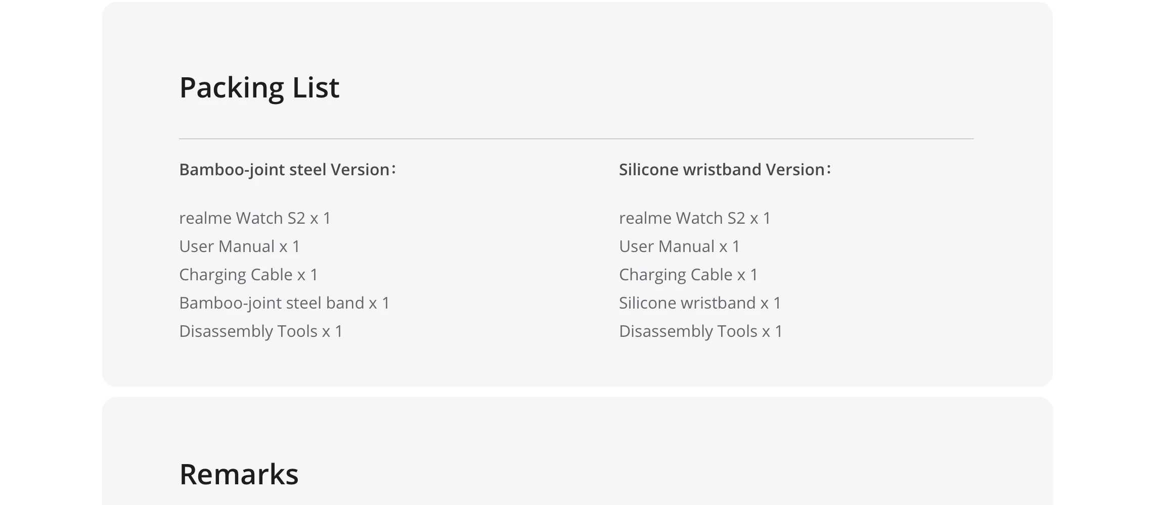 realme Watch S2(with silicone wristband / bamboo-joint steel band along with disassembly tools)*1;