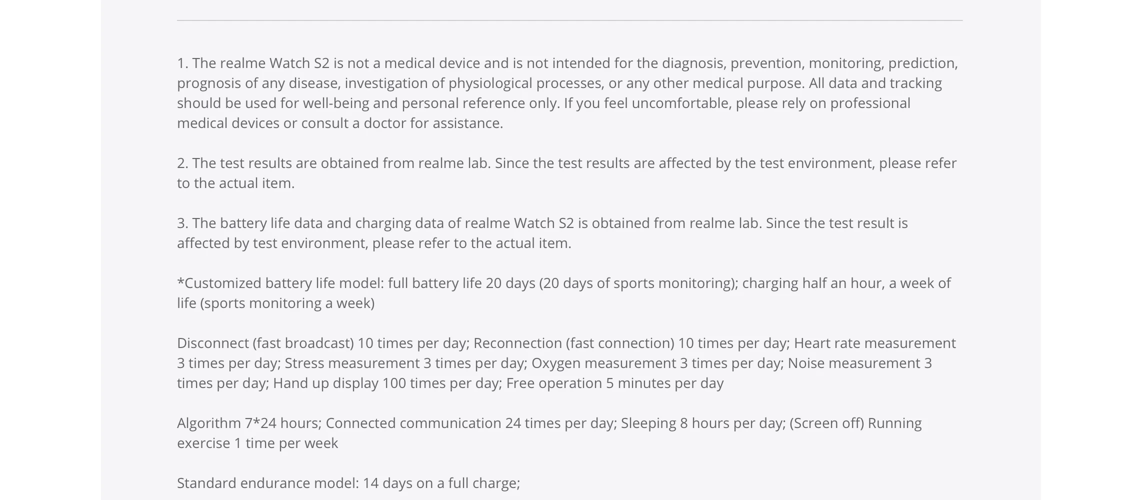 *The realme Watch S2 is not a medical device and is not intended for the diagnosis, prevention, monitoring, prediction, prognosis of any disease, investigation of physiological processes, or any other medical purpose. All data and tracking should be used for well-being and personal reference only.