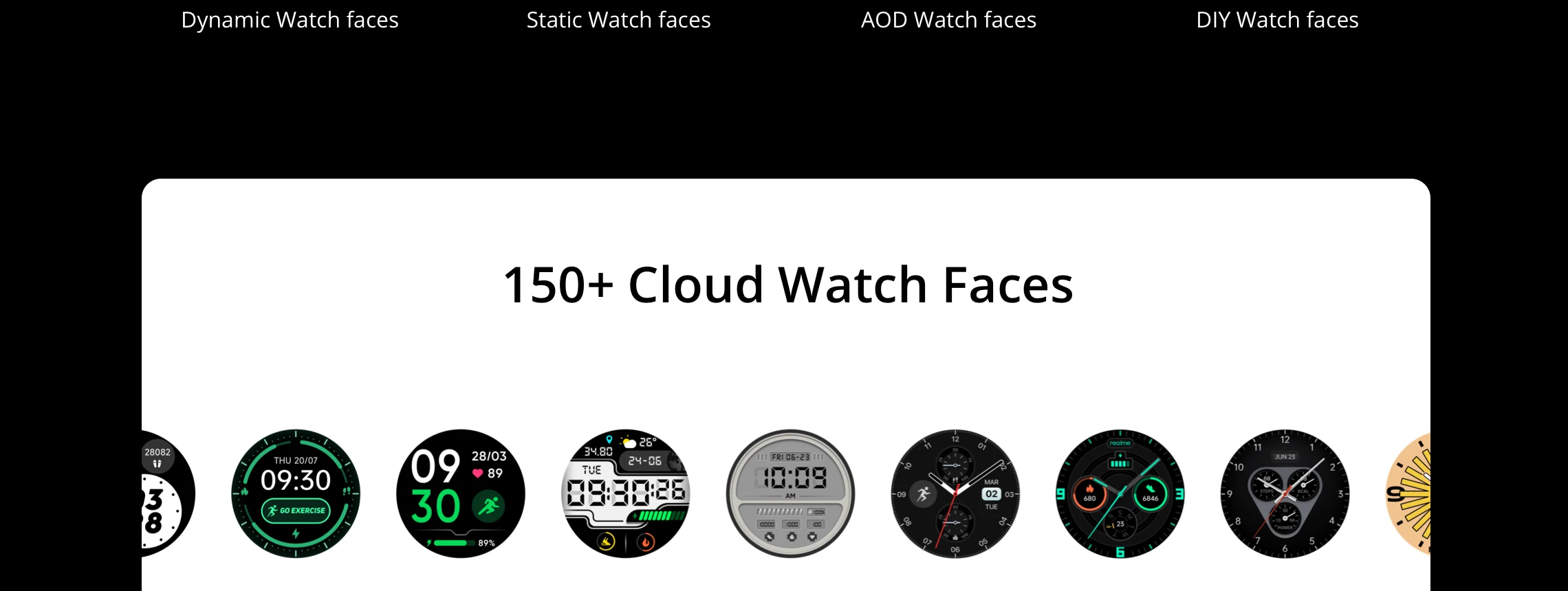 Watch Face—System pre-set watch faces; 150+ cloud stylish watch faces; Album watch face