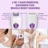🌸 2-in-1 Hair Removal Kit: This versatile kit includes both an epilator head and a shaver head, allowing you to shave, trim, and epilate with just one device. It’s convenient and easy to use!