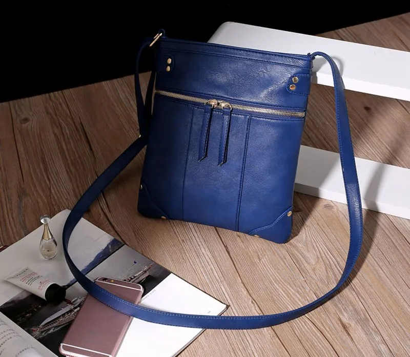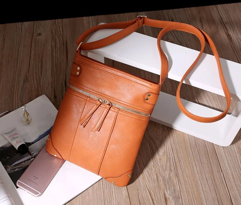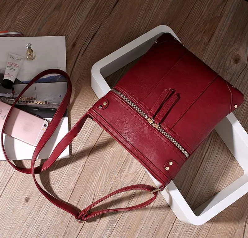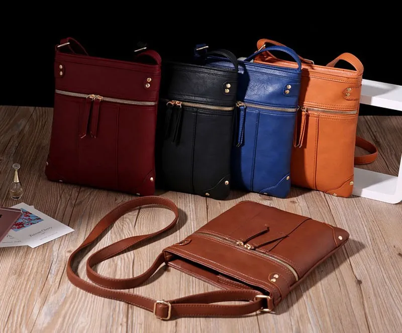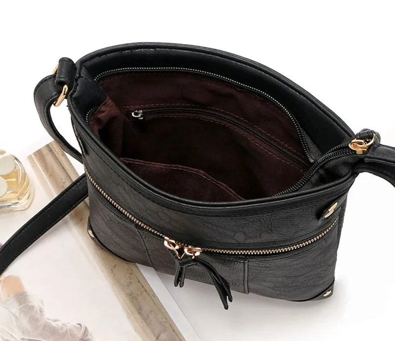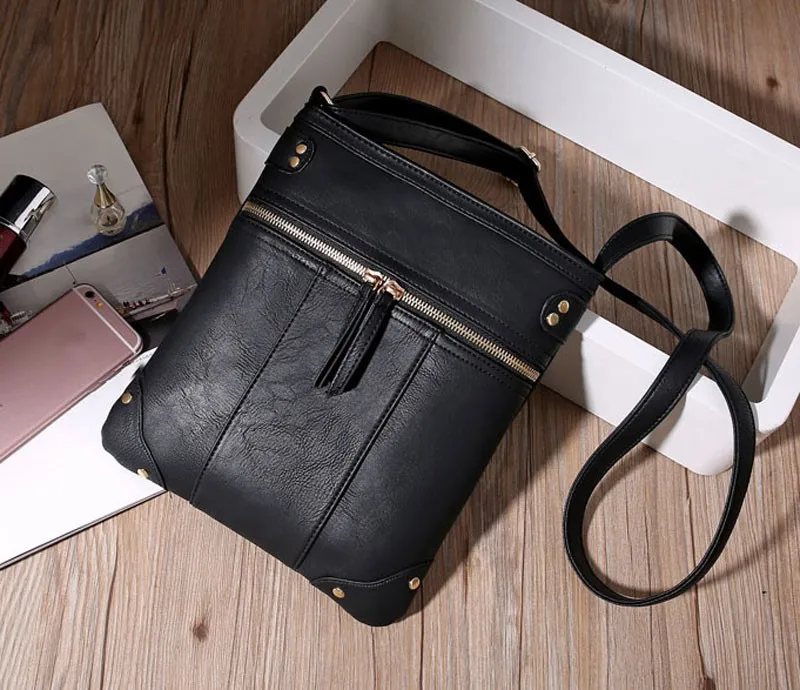 الأوروبية خمر المرأة حقيبة مزدوجة سستة المرأة حقيبة ساع جودة عالية بولي PU حقيبة كتف Crossbody Bolsas الأنثوية