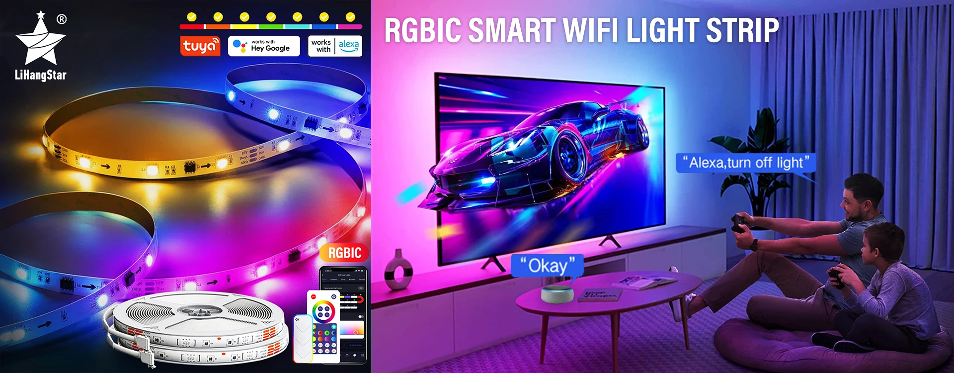 يمكن لشريط RGBIC TUYA WIFI إضاءة ذكية ضبط لون حبة بشكل فردي. انقر على الصورة لشراء