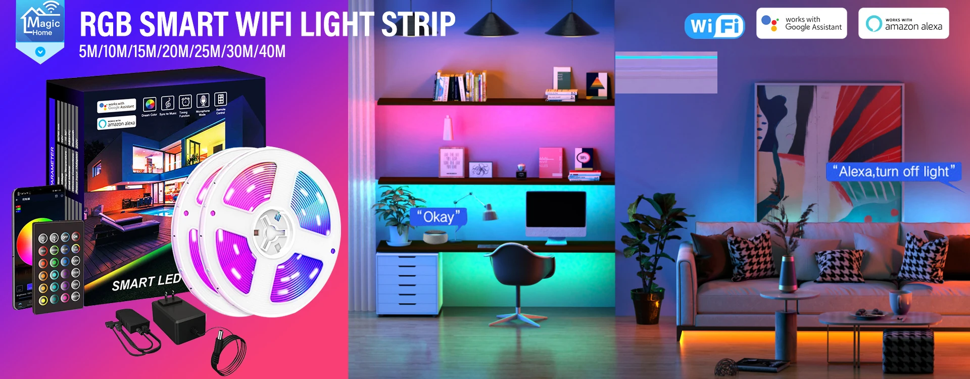 【التحكم الصوتي 】 مصابيح النيون متوافقة مع أليكسا ومساعد جوجل ، وعلى ضوء تشغيل/إيقاف ، وضبط السطوع ، وتغيير اللون مع أوامر صوتية بسيطة. إذا كنت تستخدم للتحكم الصوتي ، وسوف تستمتع الاضواء الذكية أكثر من ذلك.