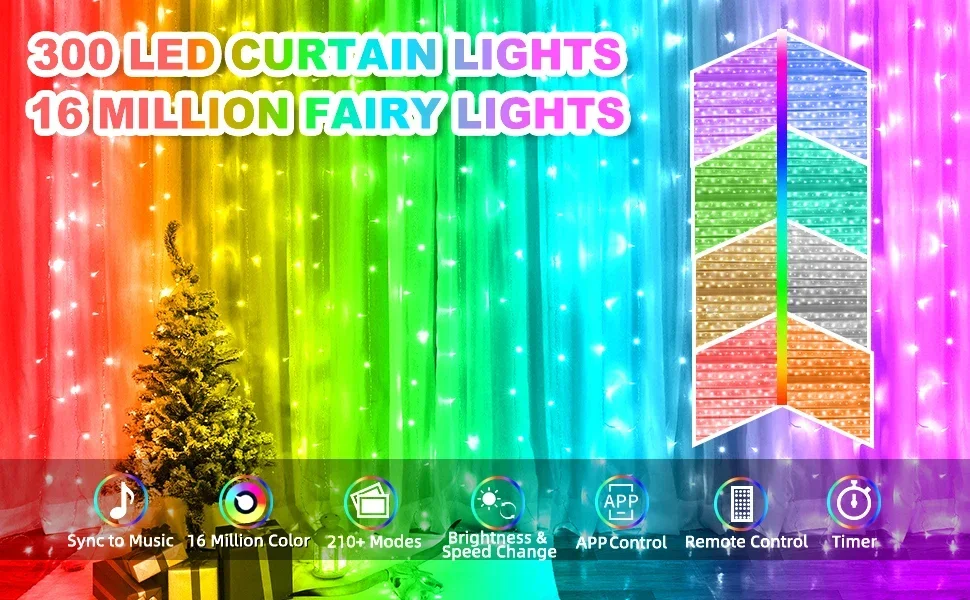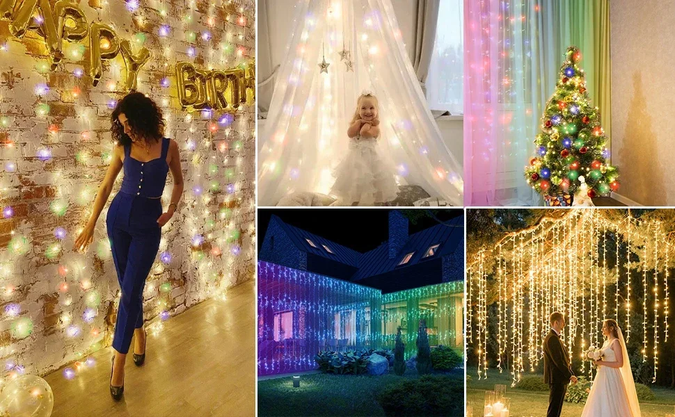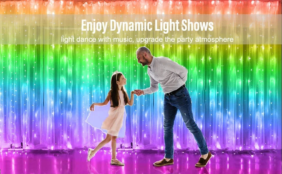 【Smart Curtain Light String】: Valentine’s Day curtain lights for the bedroom contain embedded which make different colors and scene modes show on the curtain lights simultaneously, flowing like a rainbow. The Dynamic Control Technology displays more natural color, higher lumen brightness, and richer color performance than ordinary string light.