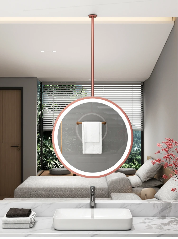مرآة بتصميم دائري للحمام، مرآة مكياج بإضاءة Led، مرآة مكياج إبداعية مثبتة على الحائط، لتزيين المنزل وتصفيف الشعر الحديث