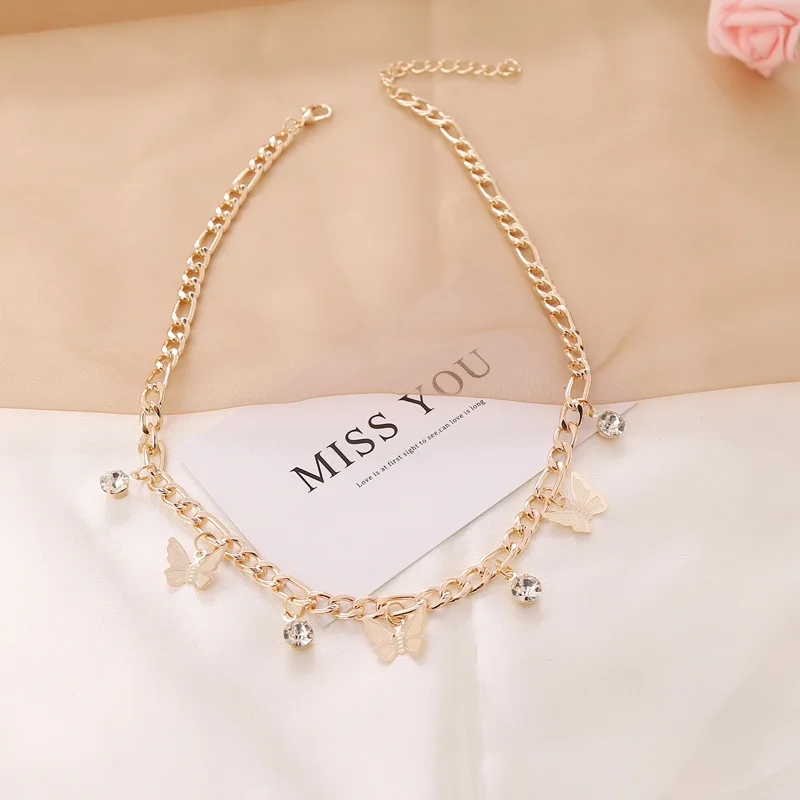 Sequin Star Butterfly Drop Necklace Double Layer Clavicle Chain For Women Butterfly Rhinestone Pendant Necklace Jewelry gift