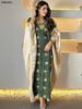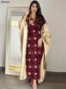 Siskakia Arab Dubai Fashion Floral Embroidery Long Dresses Moroccan Kaftan Casual Contrast Color Batwing Sleeve Abaya For Women