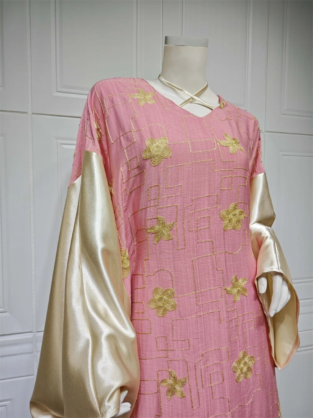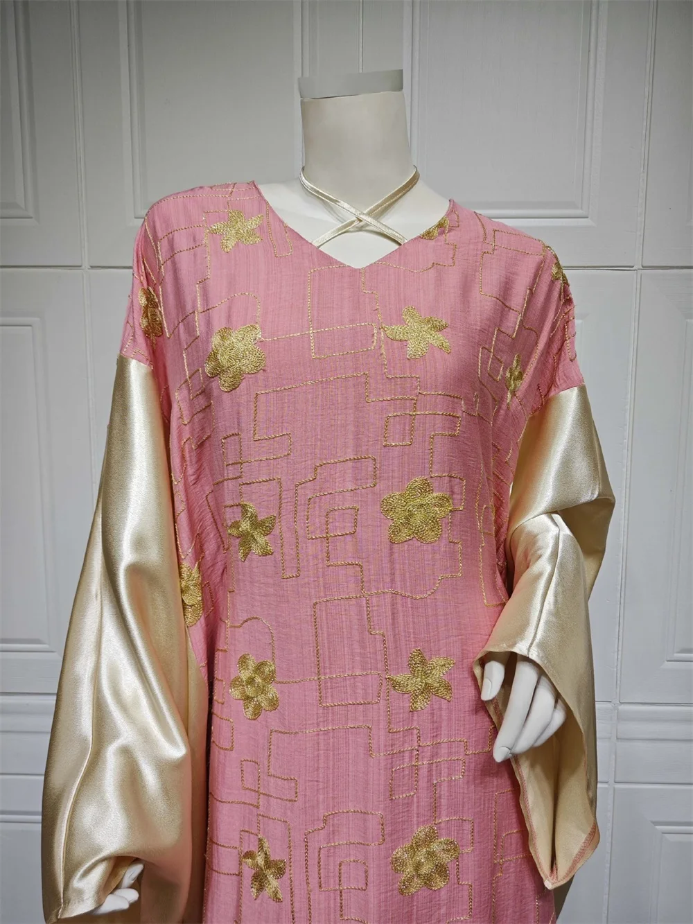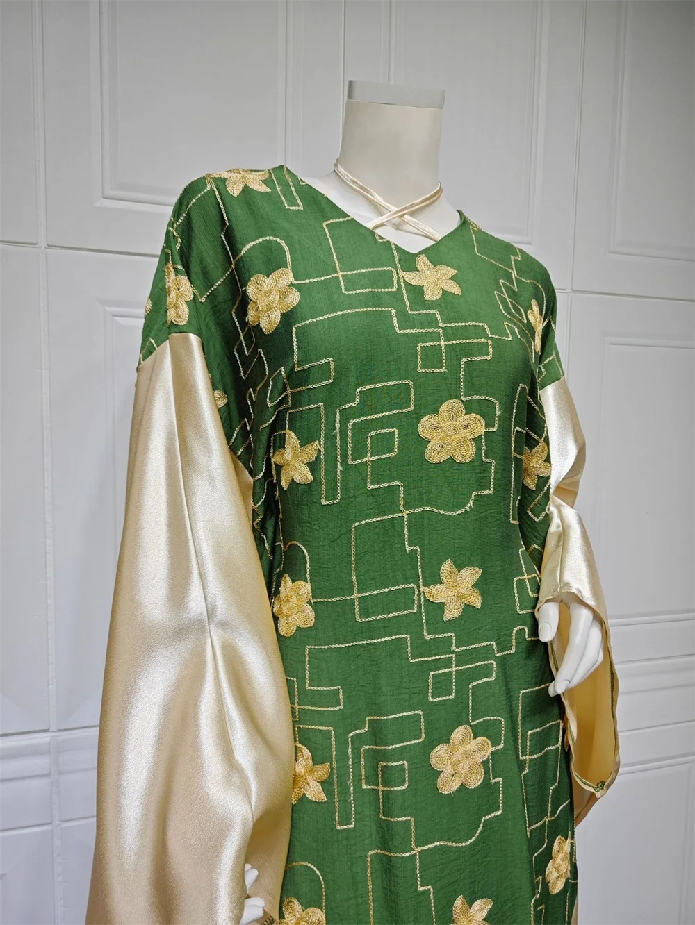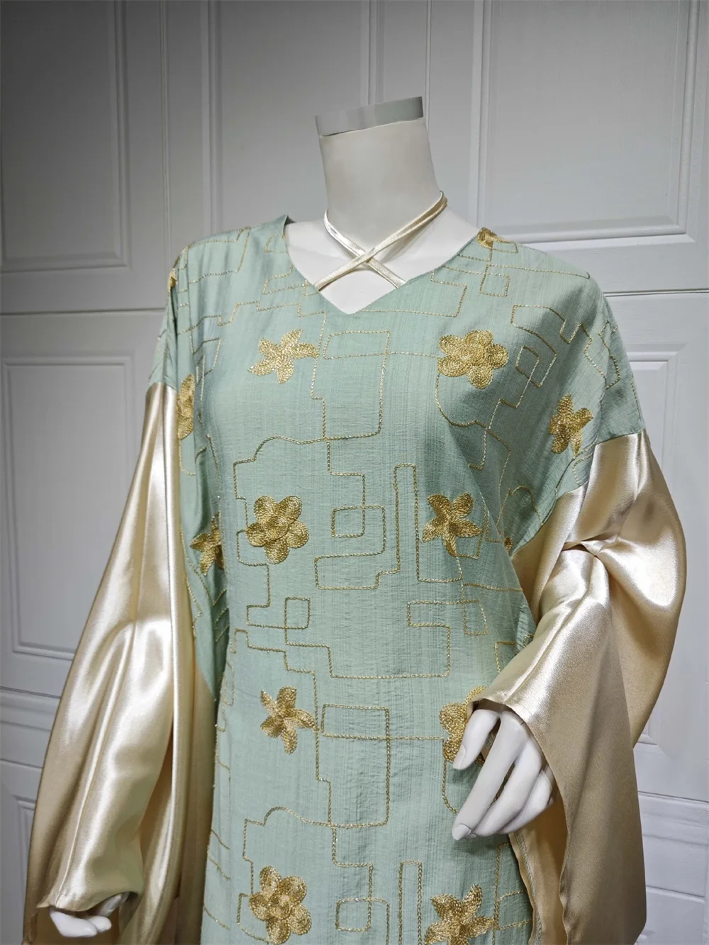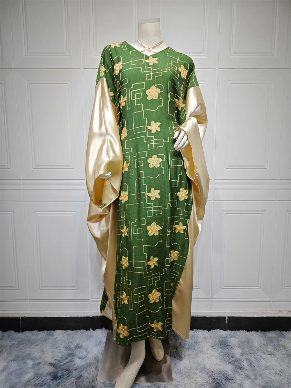 Siskakia Arab Dubai Fashion Floral Embroidery Long Dresses Moroccan Kaftan Casual Contrast Color Batwing Sleeve Abaya For Women
