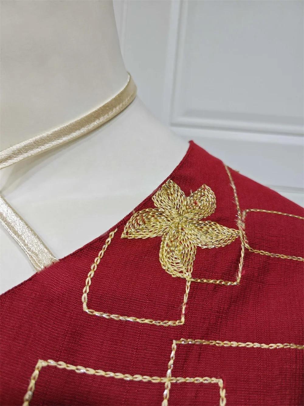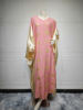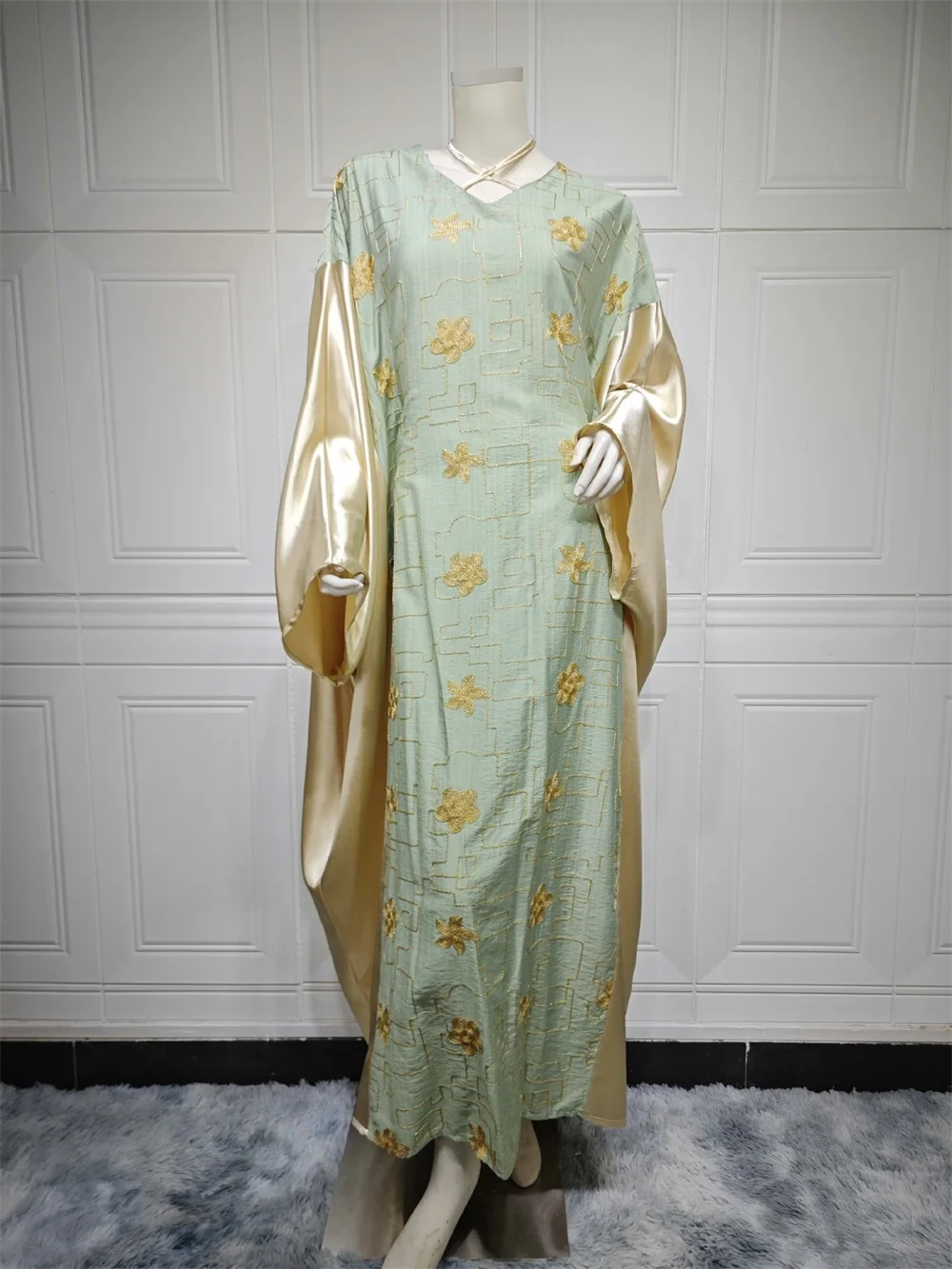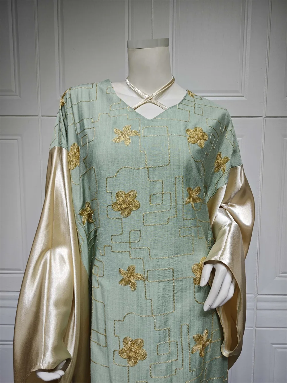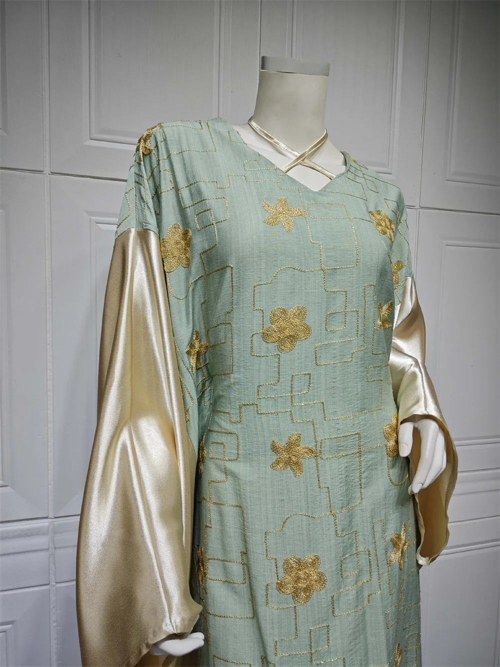 Siskakia Arab Dubai Fashion Floral Embroidery Long Dresses Moroccan Kaftan Casual Contrast Color Batwing Sleeve Abaya For Women