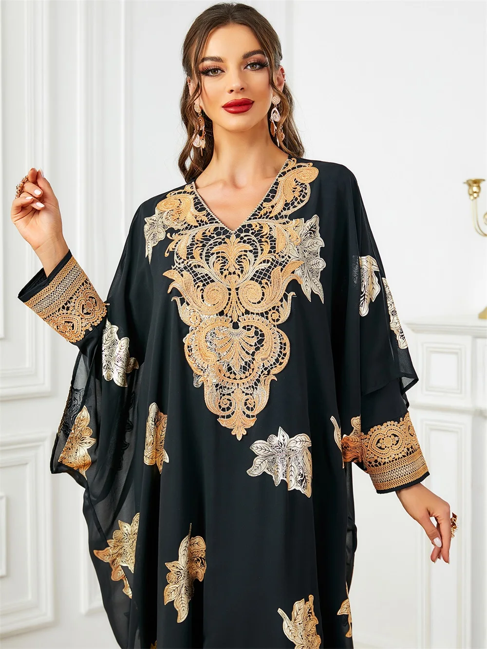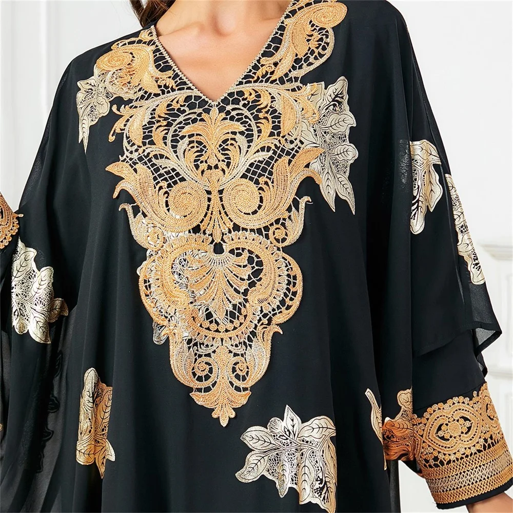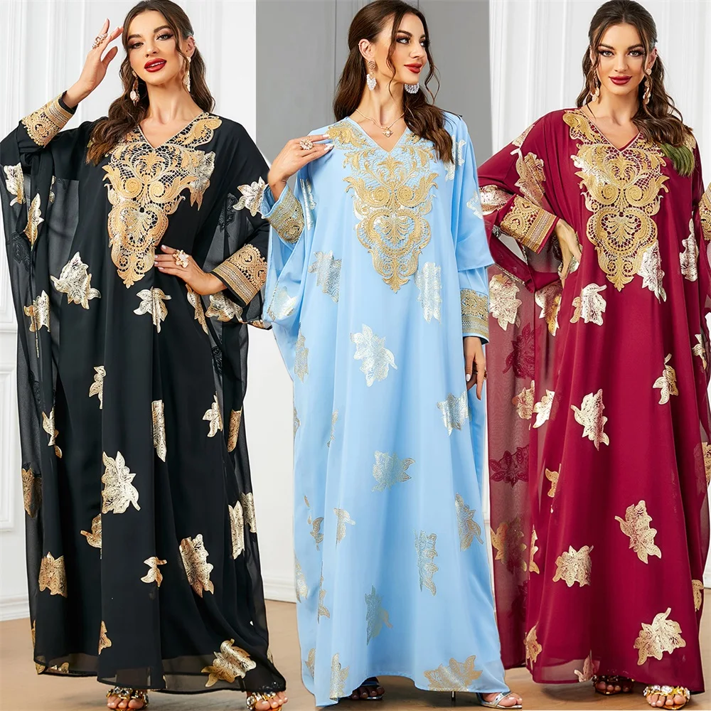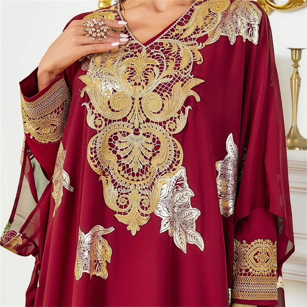 Siskakia Dubai Luxury Set Solid Long Dress And Chiffon Abaya Fashion Floral Gold Stamping Lace Tape Moroccan Evening Clothing