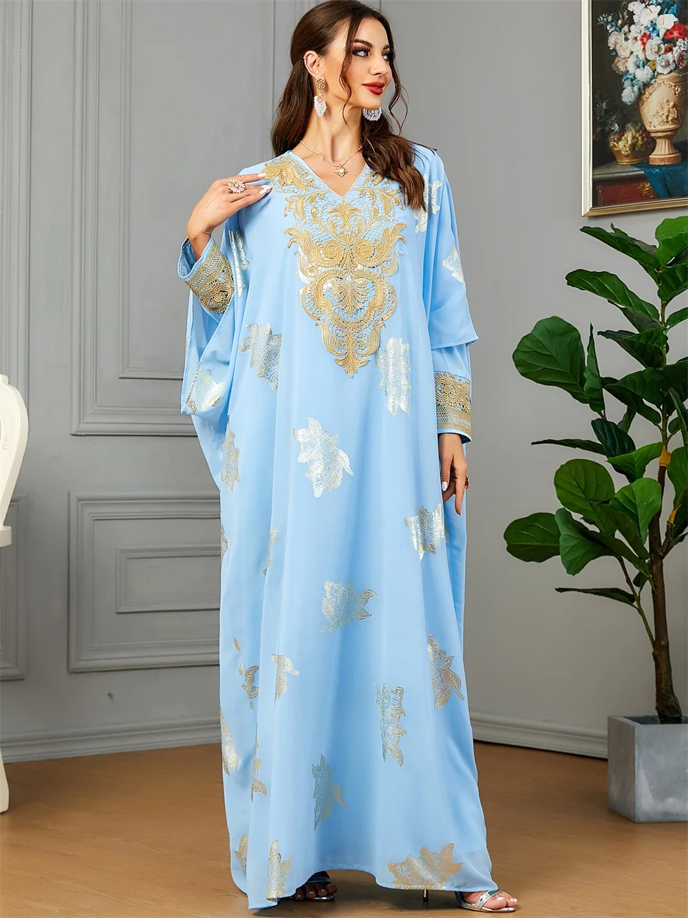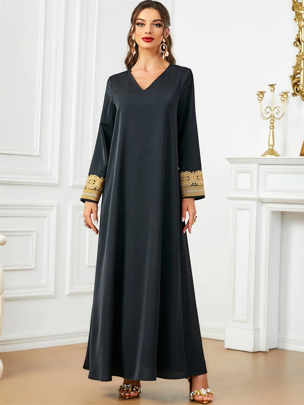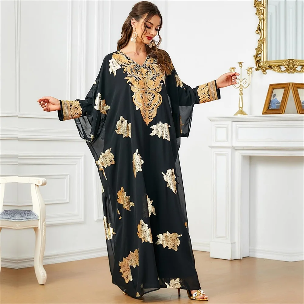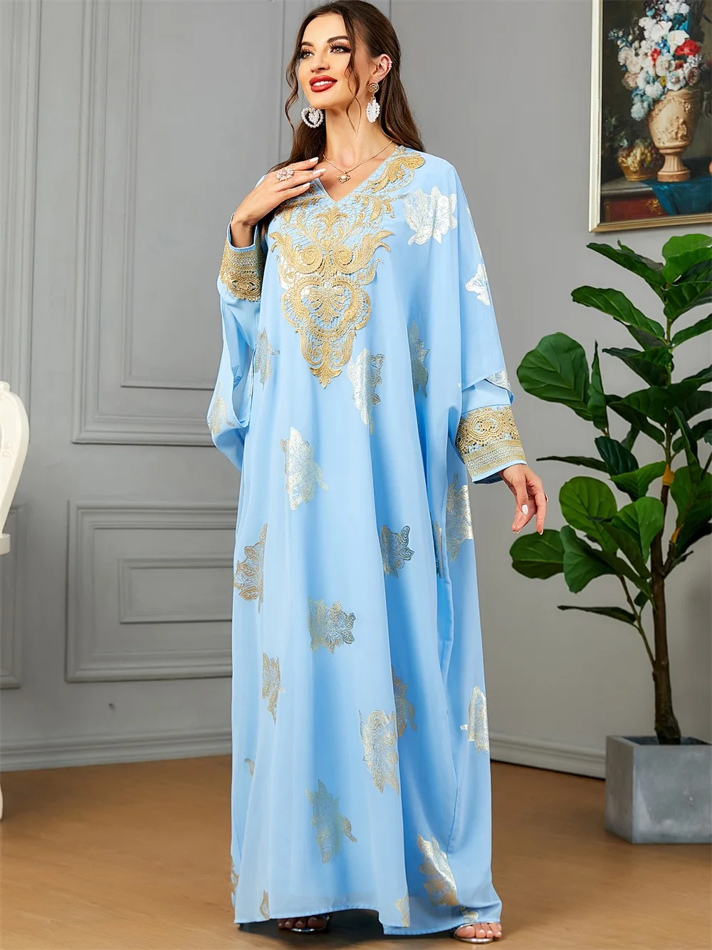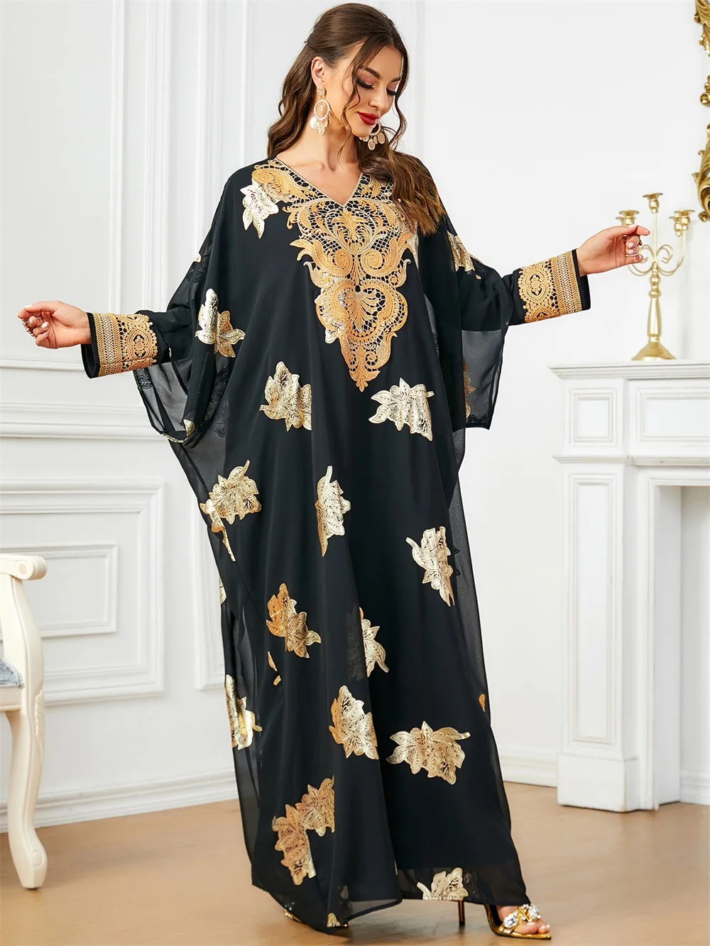Siskakia Dubai Luxury Set Solid Long Dress And Chiffon Abaya Fashion Floral Gold Stamping Lace Tape Moroccan Evening Clothing