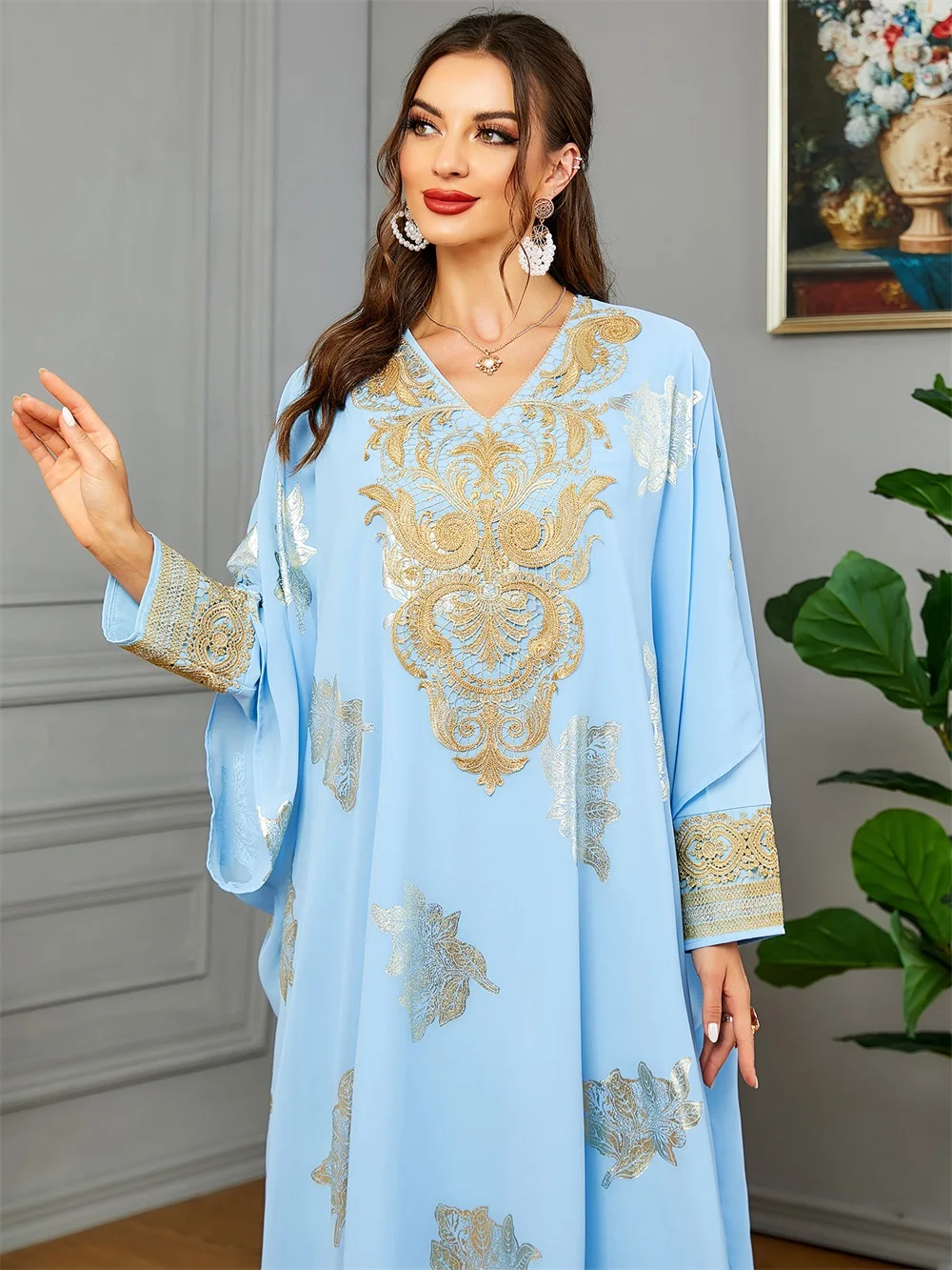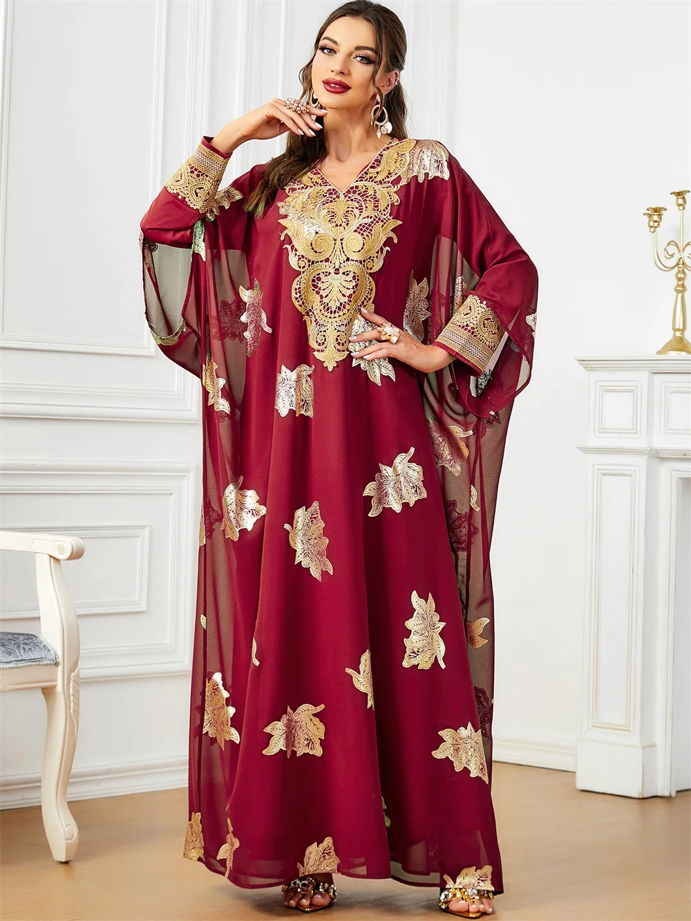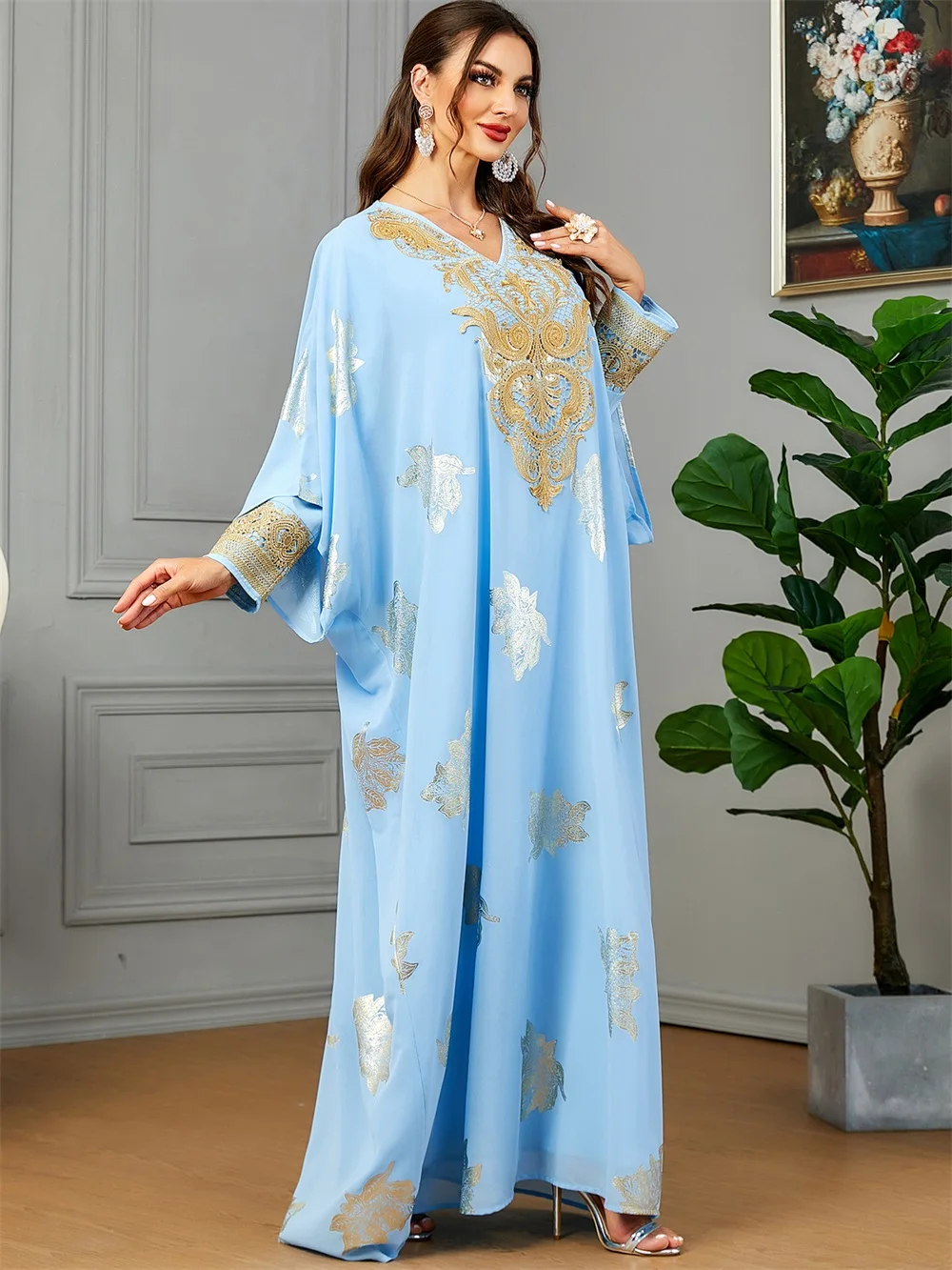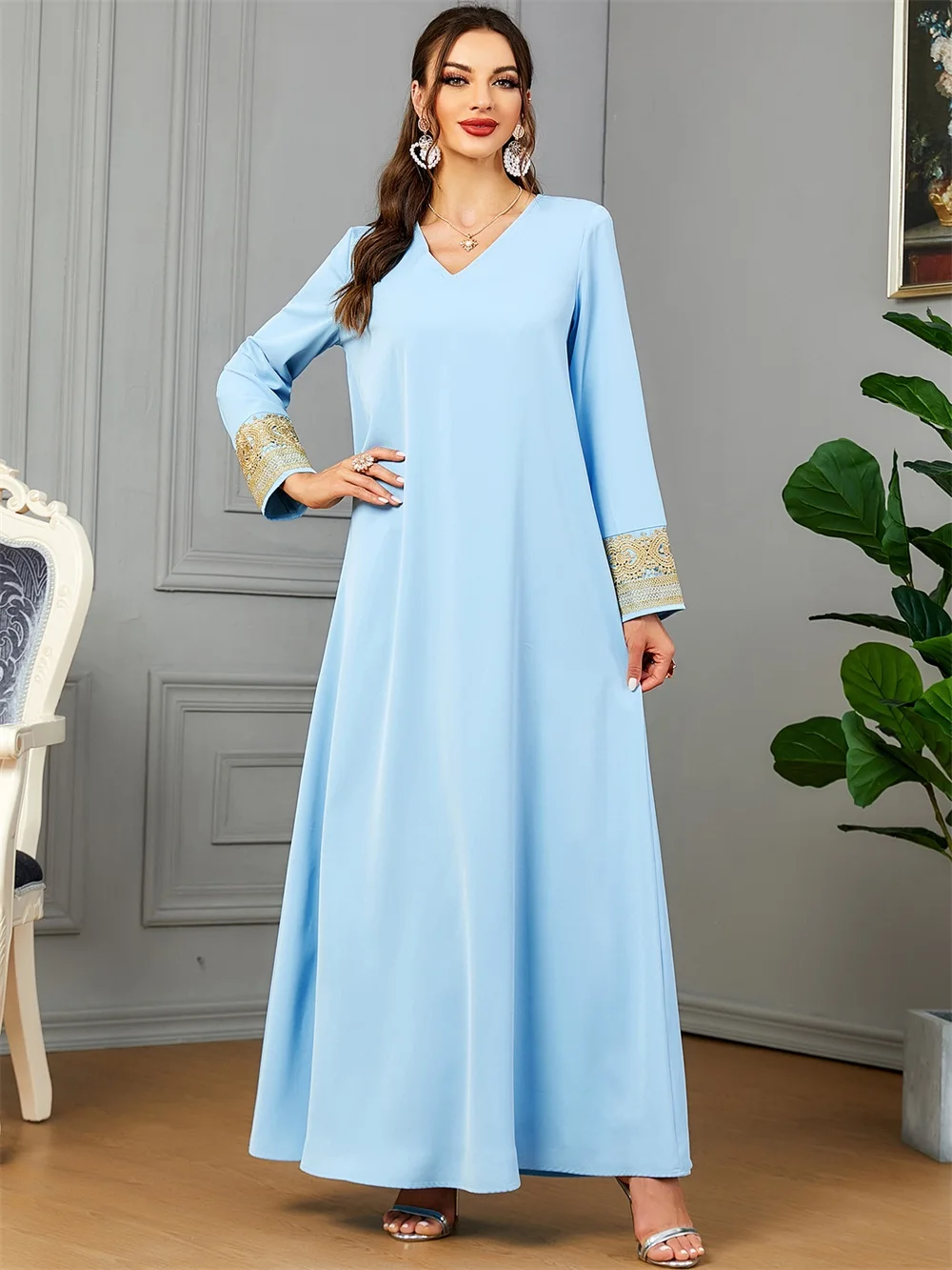 Siskakia Dubai Luxury Set Solid Long Dress And Chiffon Abaya Fashion Floral Gold Stamping Lace Tape Moroccan Evening Clothing