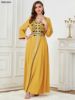 Siskakia Dubai Muslim Embroideried Woman Dress V-Neck Abaya With Belt Elegant Casual Moroccan Saudi Arab Kebaya Fashion Robe