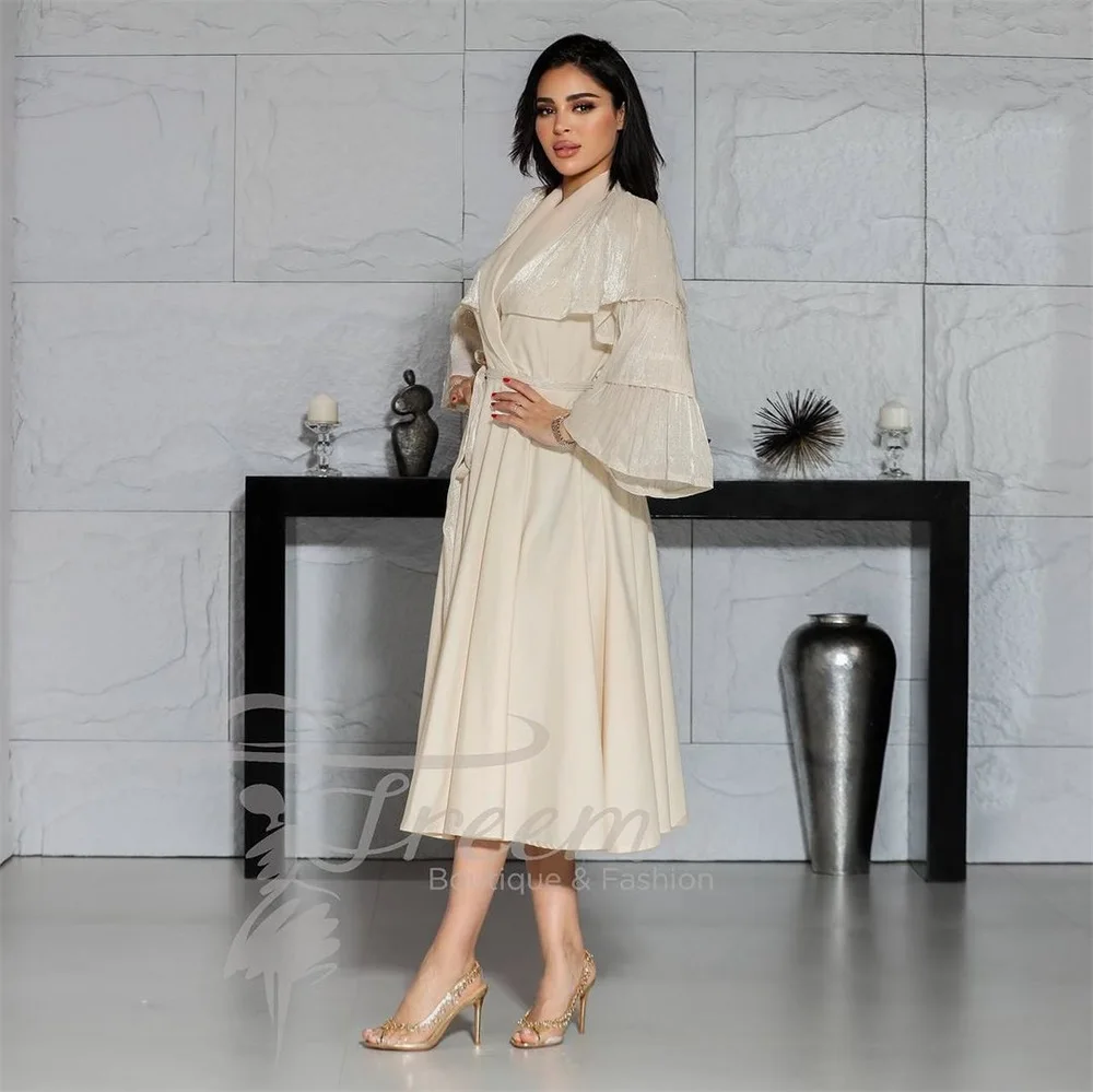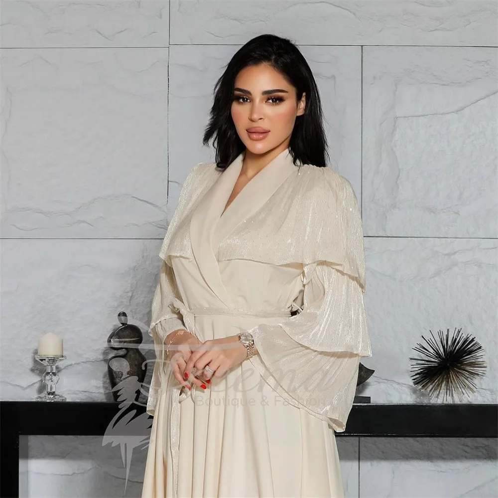 Siskakia Dubai Ruffles Sleeve Lapel Collar Abayas Fashion Rhinestones Islam Dress For Prom Moroccan Galabia Women Belted kaftan