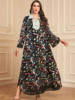 Siskakia Dubai Sequins Embroideried Abaya For Muslim Woman Lapel Collar Loose Moroccan Saudi Kaftan Elegant Casual Arab Robe