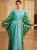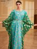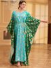 Siskakia Elegant Casual Saudi African Women Homewear Dresses Printing Gold Stamping Belted Batwing Sleeve Abayas Turkish Kaftan