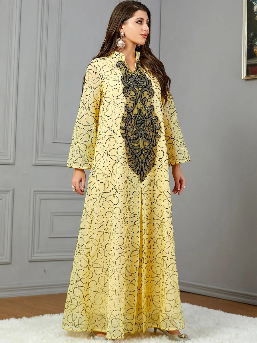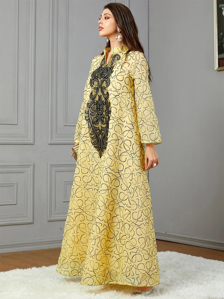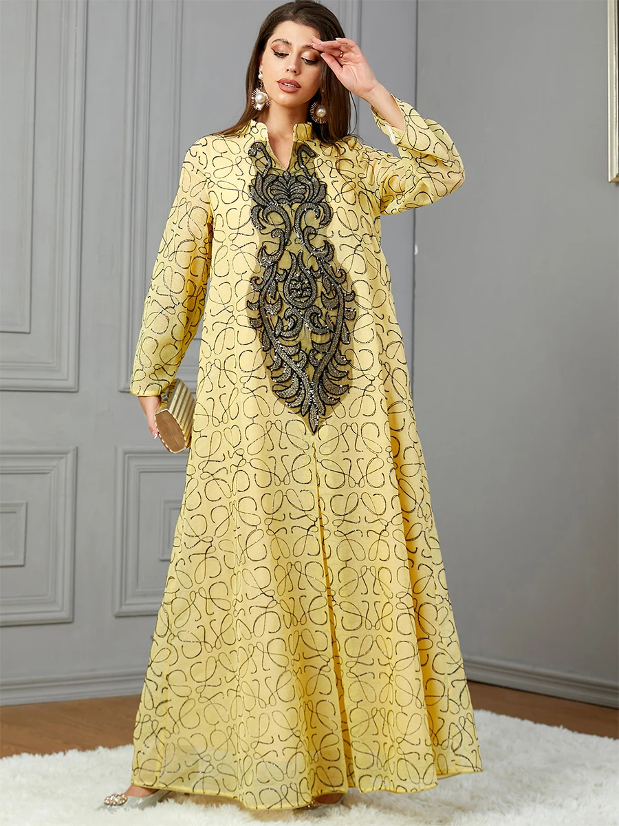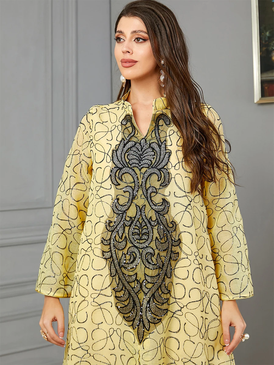 Siskakia Embroideried Sequin Luxurious Dresses With Long Sleeves Muslim Dubai Fashion Elegant Loose Abayas Women’s Evening Dress