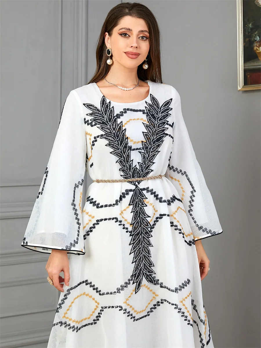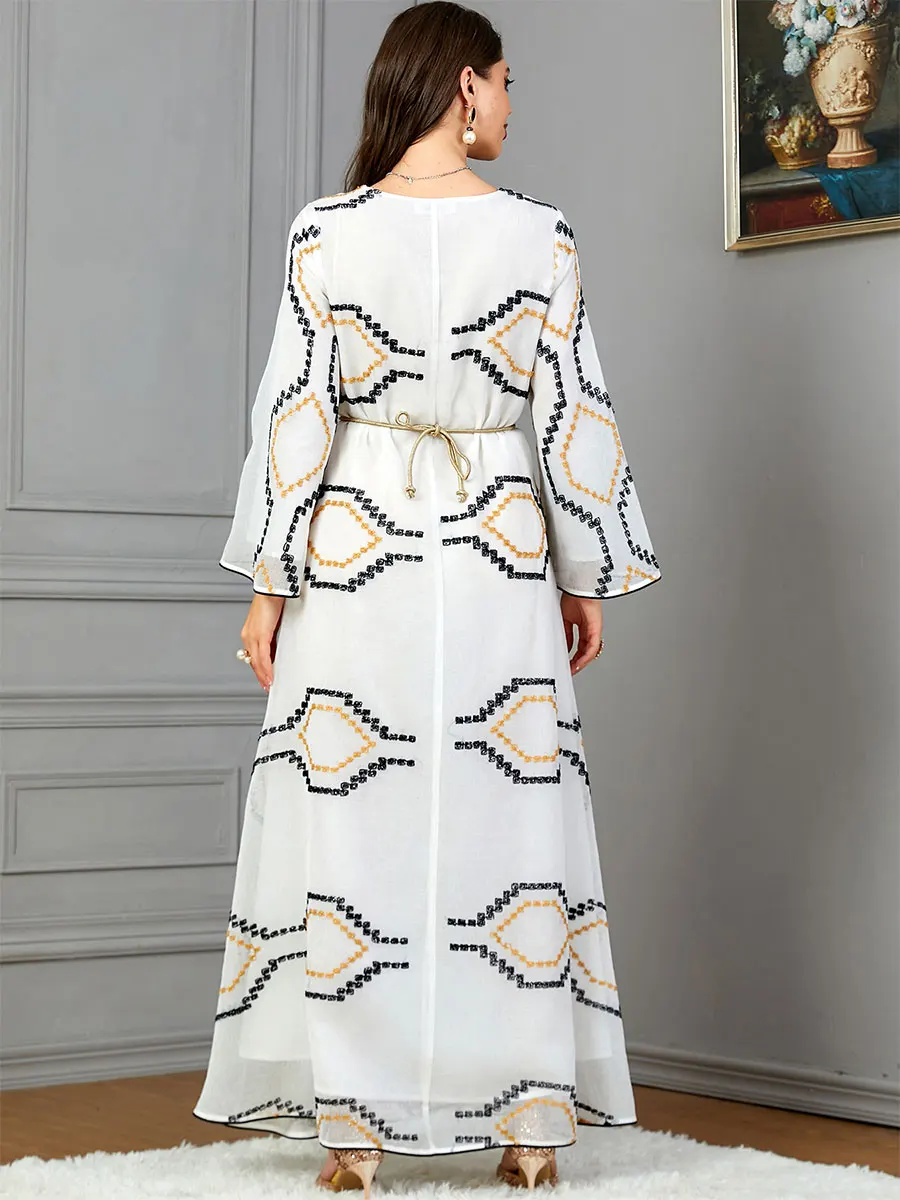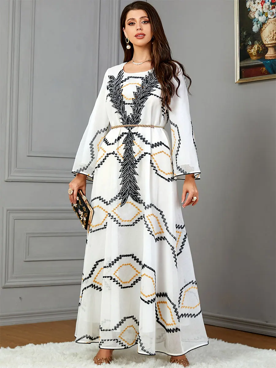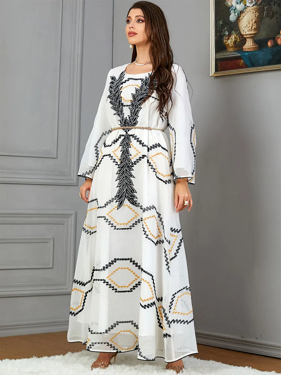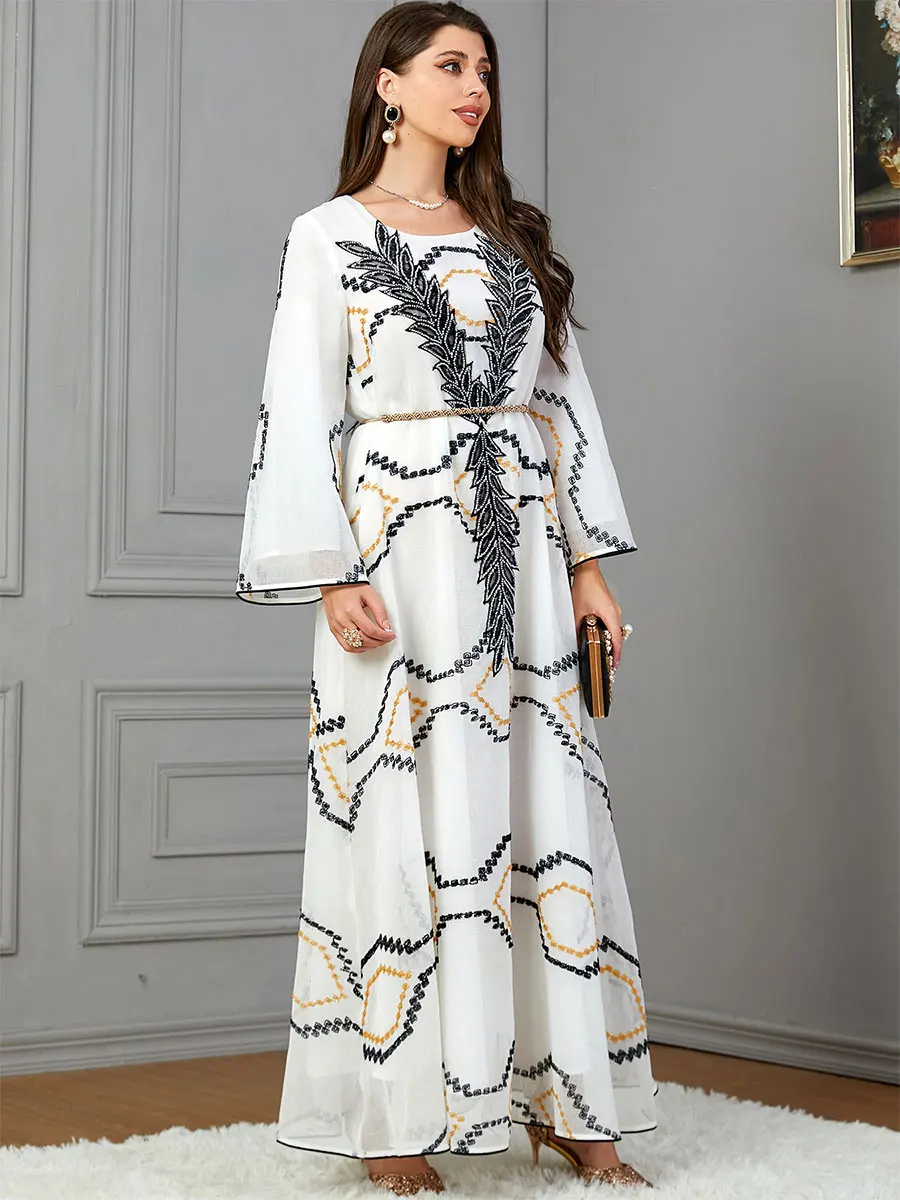 Siskakia Fashion Kaftan Abaya Dubai Islam Muslim Floral Embroidery Mesh Long Sleeves Crew Neck Evening Woman Dress Casual Abayas