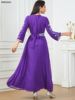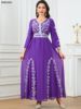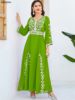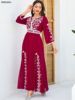 Siskakia Fashion Muslim Dubai Morocan Islamic Abayas V-Neck A-Line Neck Belted Kaftan Floral Embroidery Arabic Robe For Woman