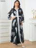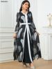 Siskakia Fashion Muslim Sets Black Dresses Casual Long Sleeve Belted Clothing Jalabiyat Turkish Moroccan Caftan For Women 2024