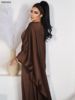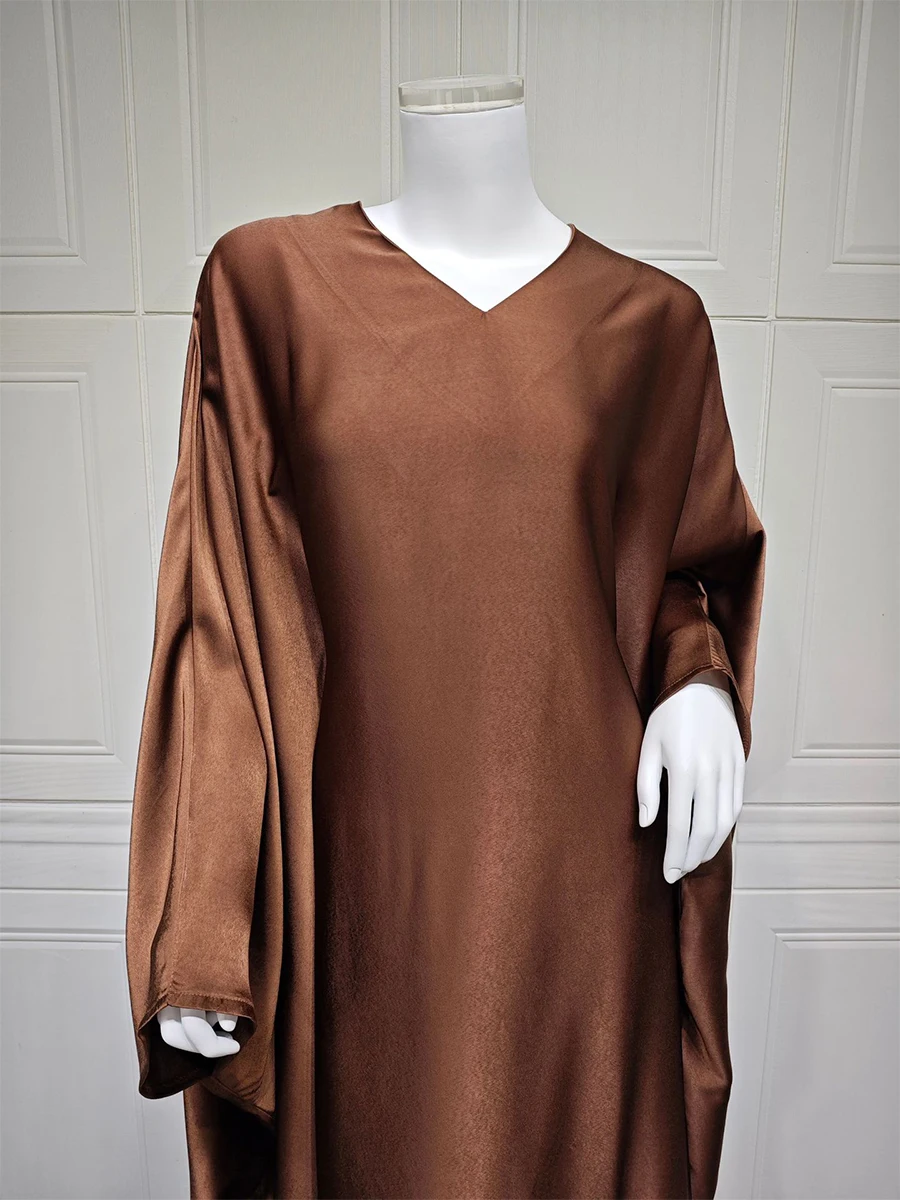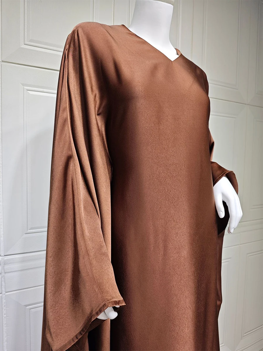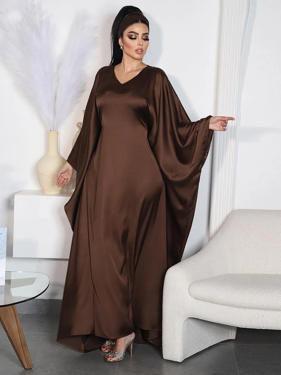 Siskakia Fashion Solid Open Abaya Long Sleeves V-Neck Satin Dress Elegant Casual Muslim Dubai Moroccan Kimono Clothing