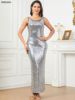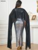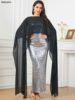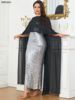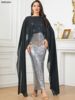 Siskakia Kaftan Abaya Dubai Maxi Mermaid Dress Sleeveless With Cape Silvery Sequins Muslim Elegant Women Party Dresses