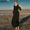 Siskakia Maxi Dress for Women Black Hollow Out Mesh Embroidered Lantern Sleeve Arab Dubai Moraccan Caftan Elegant Party Robe Eid