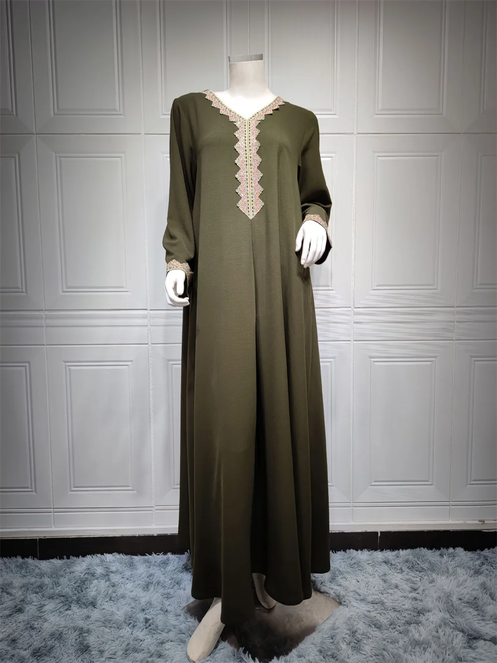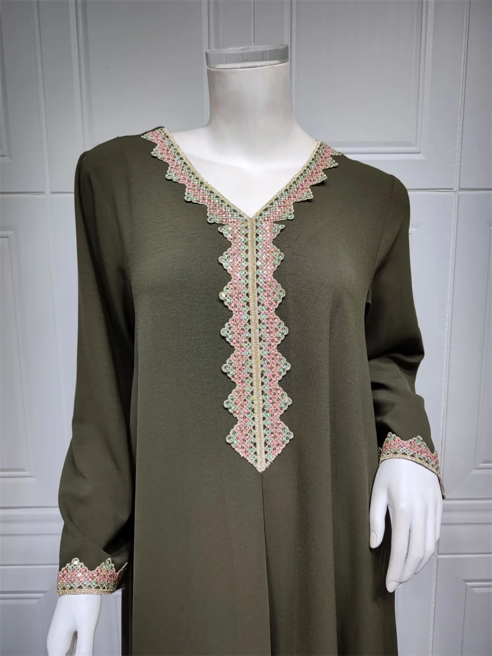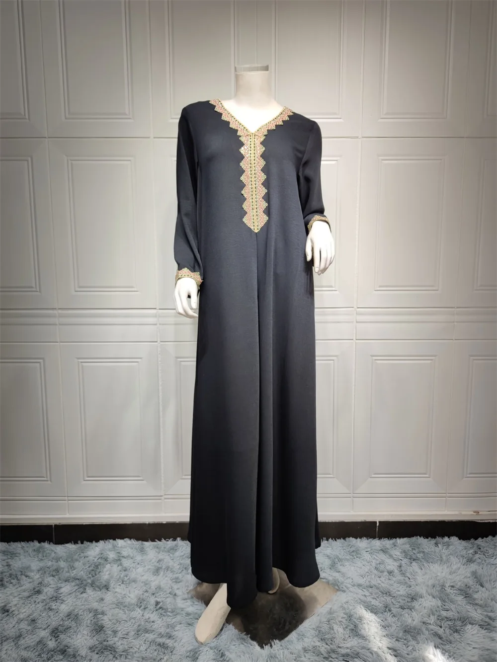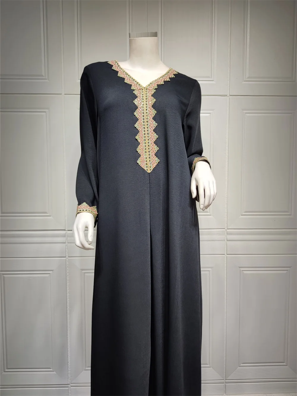 Siskakia Moroccan Women Jalabiyat Fashion Basic Solid Diamonds Full Sleeve V-Neck Elegant Chic Turkish Female Abaya
