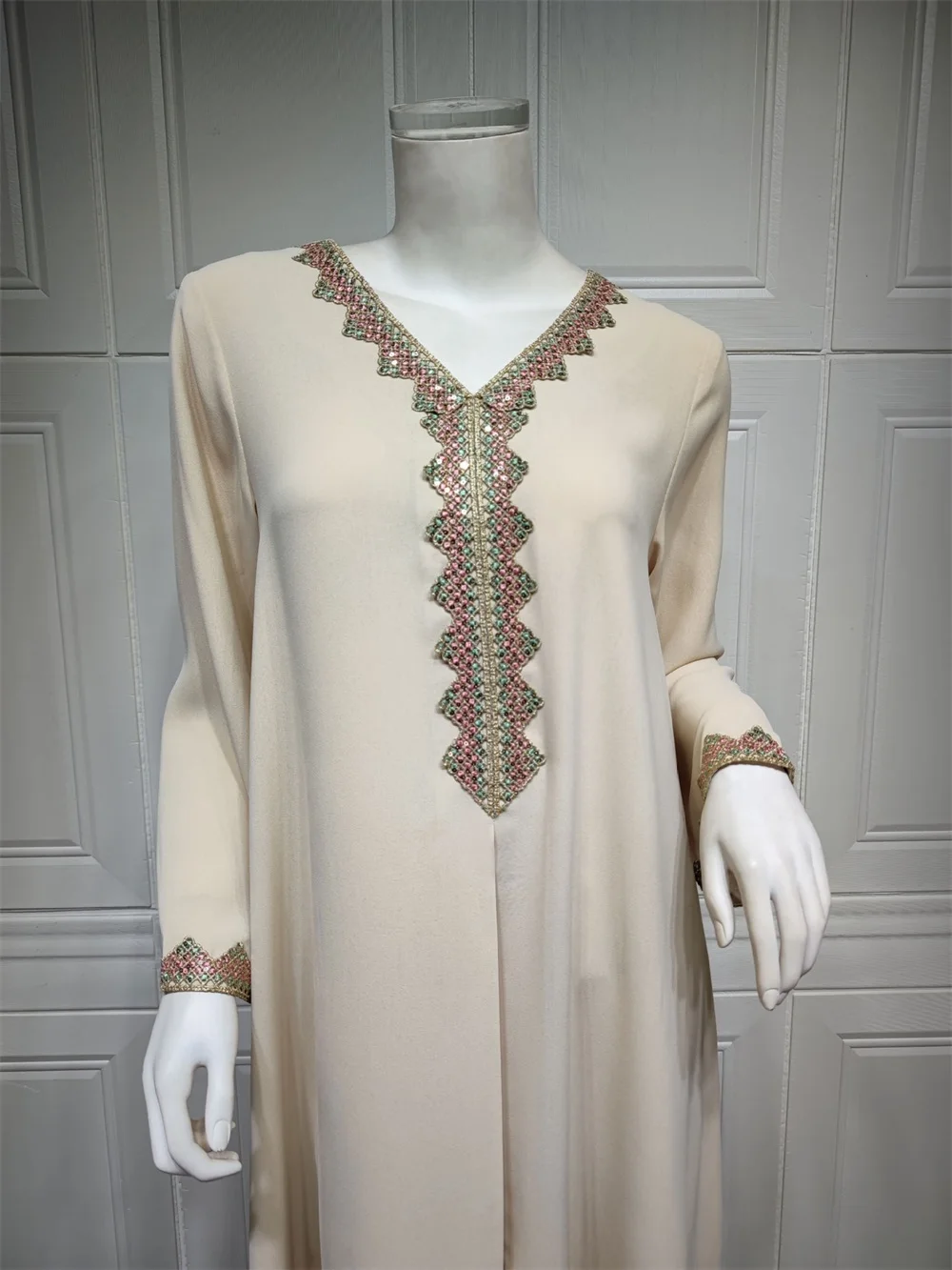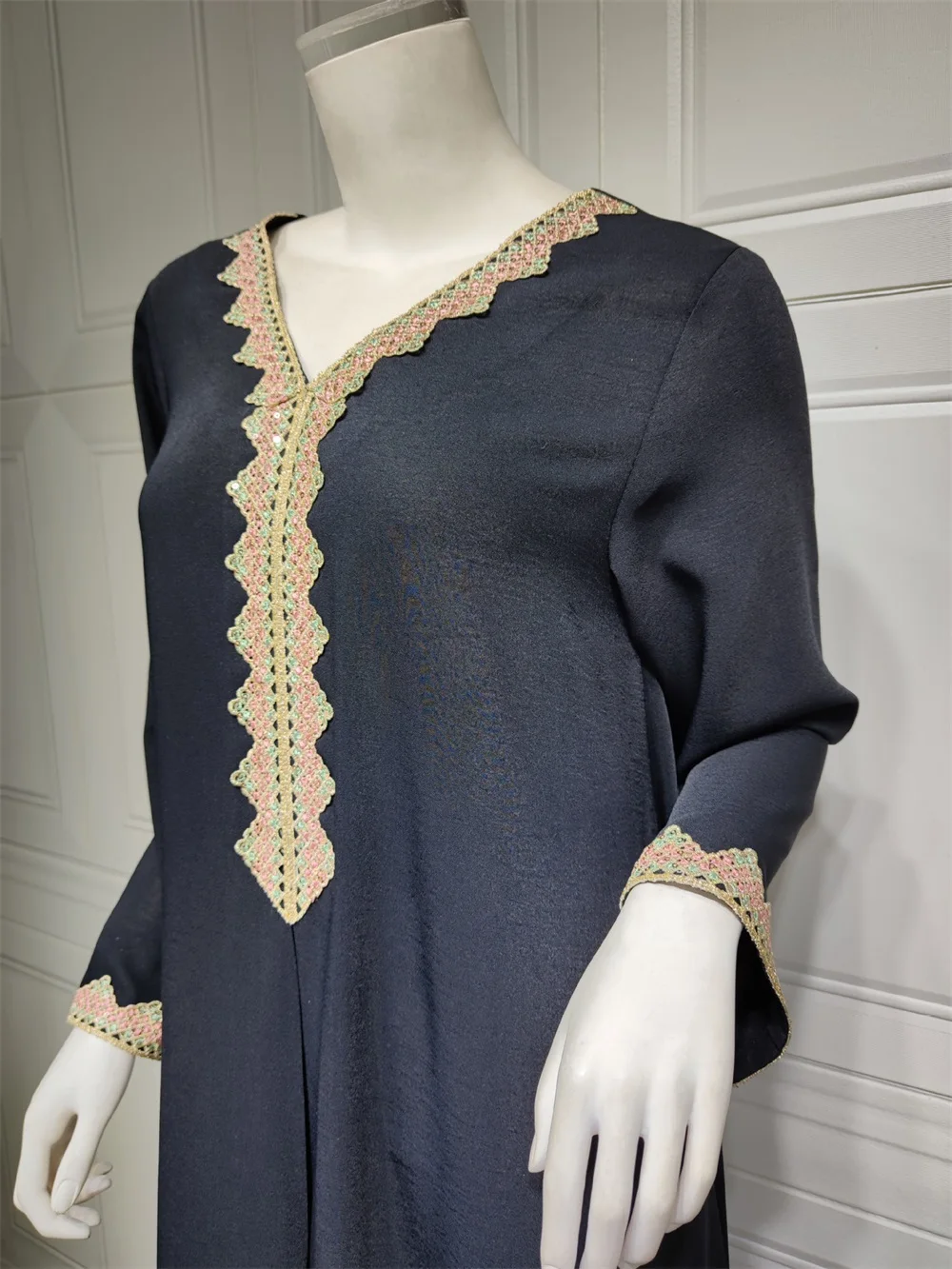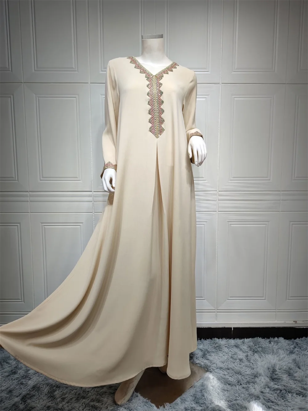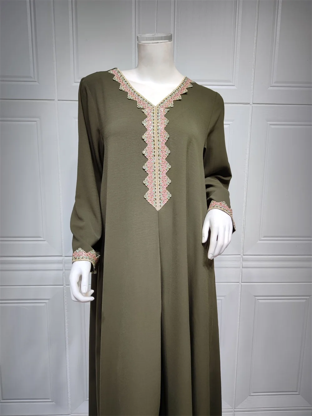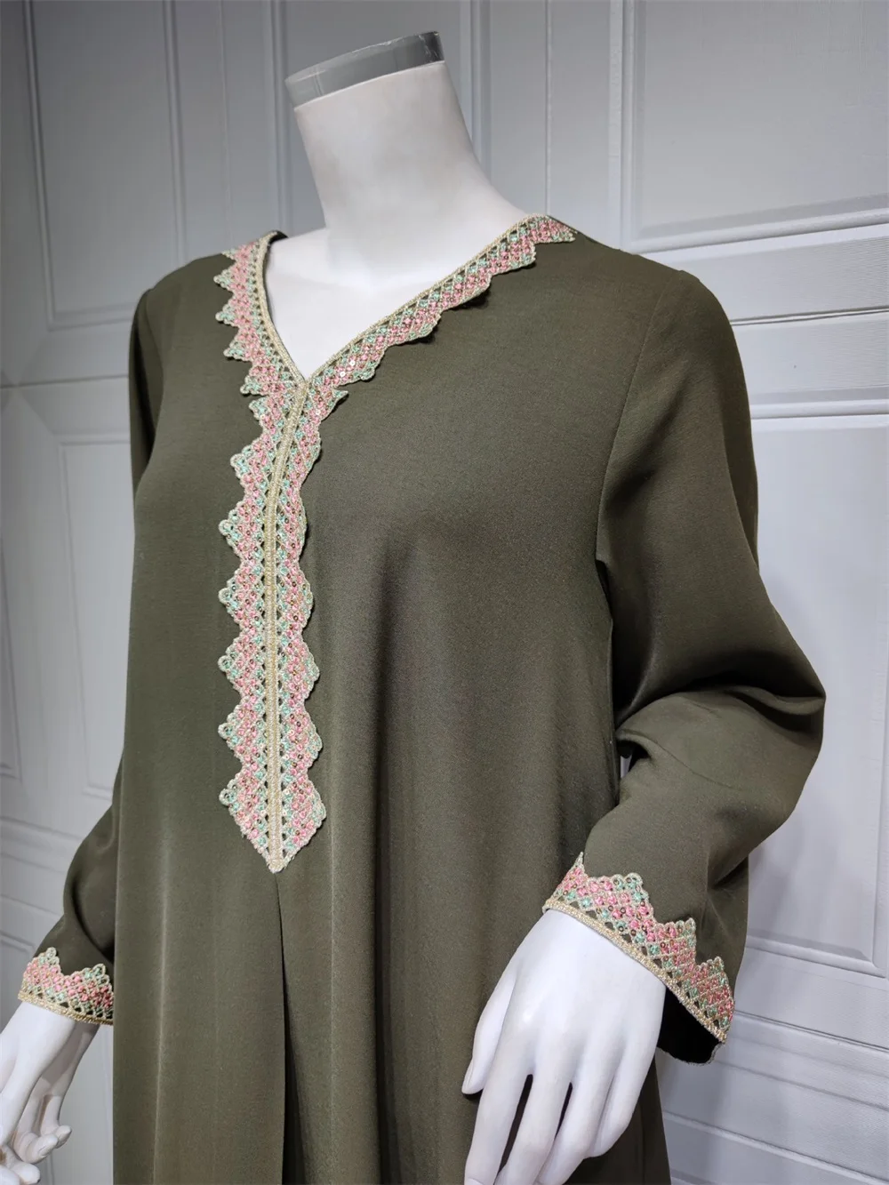 Siskakia Moroccan Women Jalabiyat Fashion Basic Solid Diamonds Full Sleeve V-Neck Elegant Chic Turkish Female Abaya