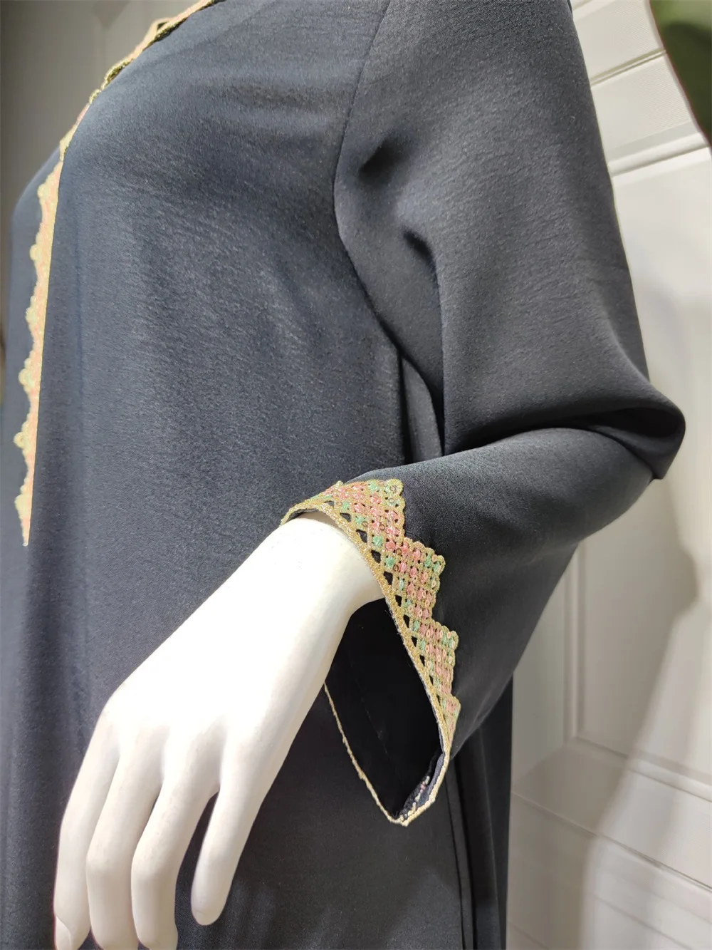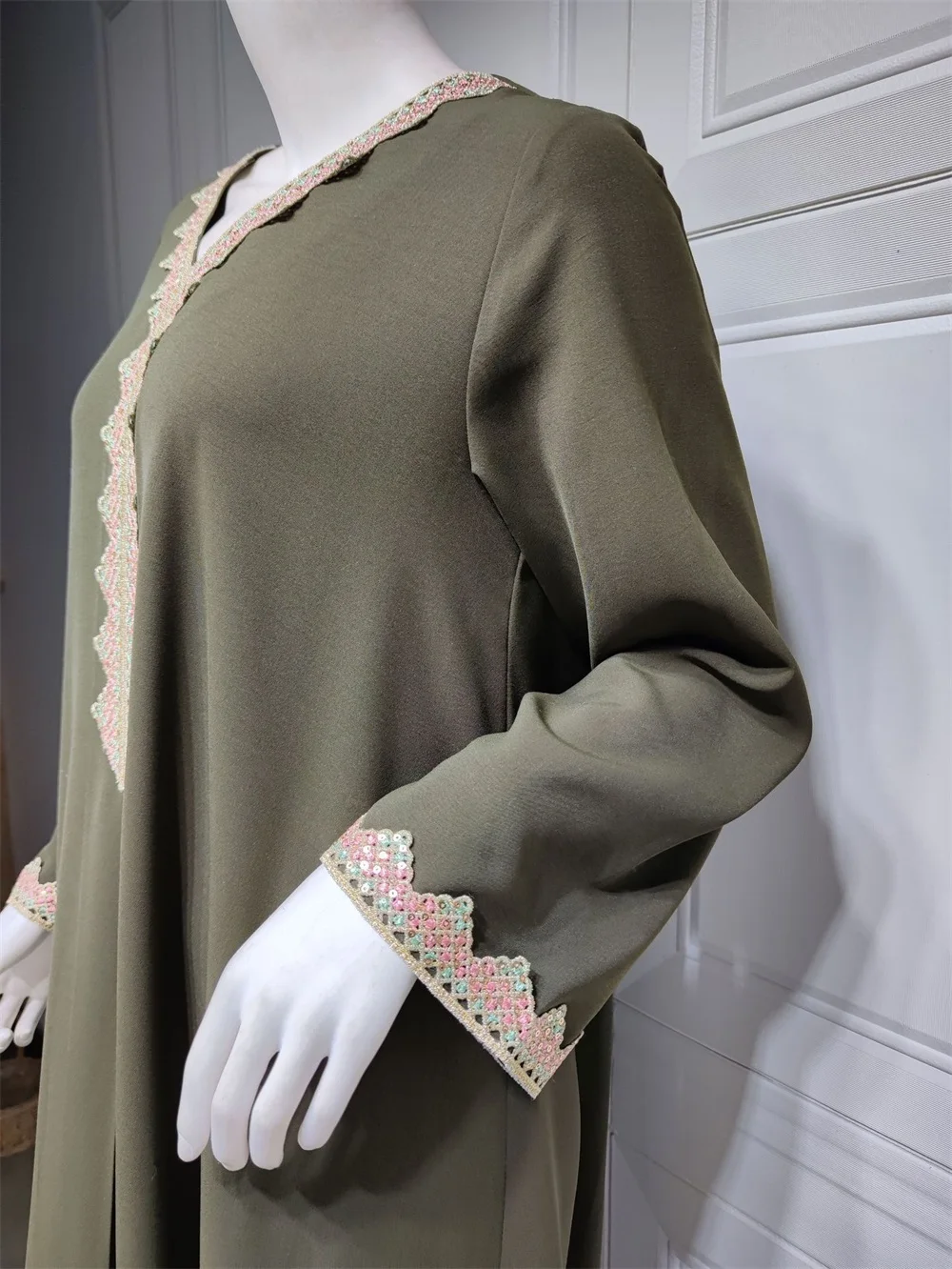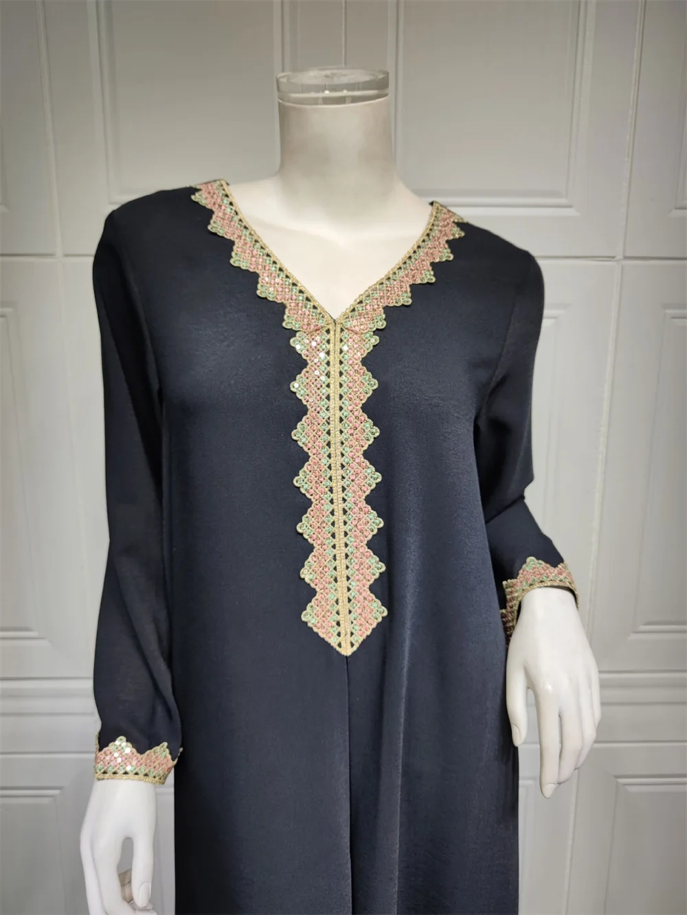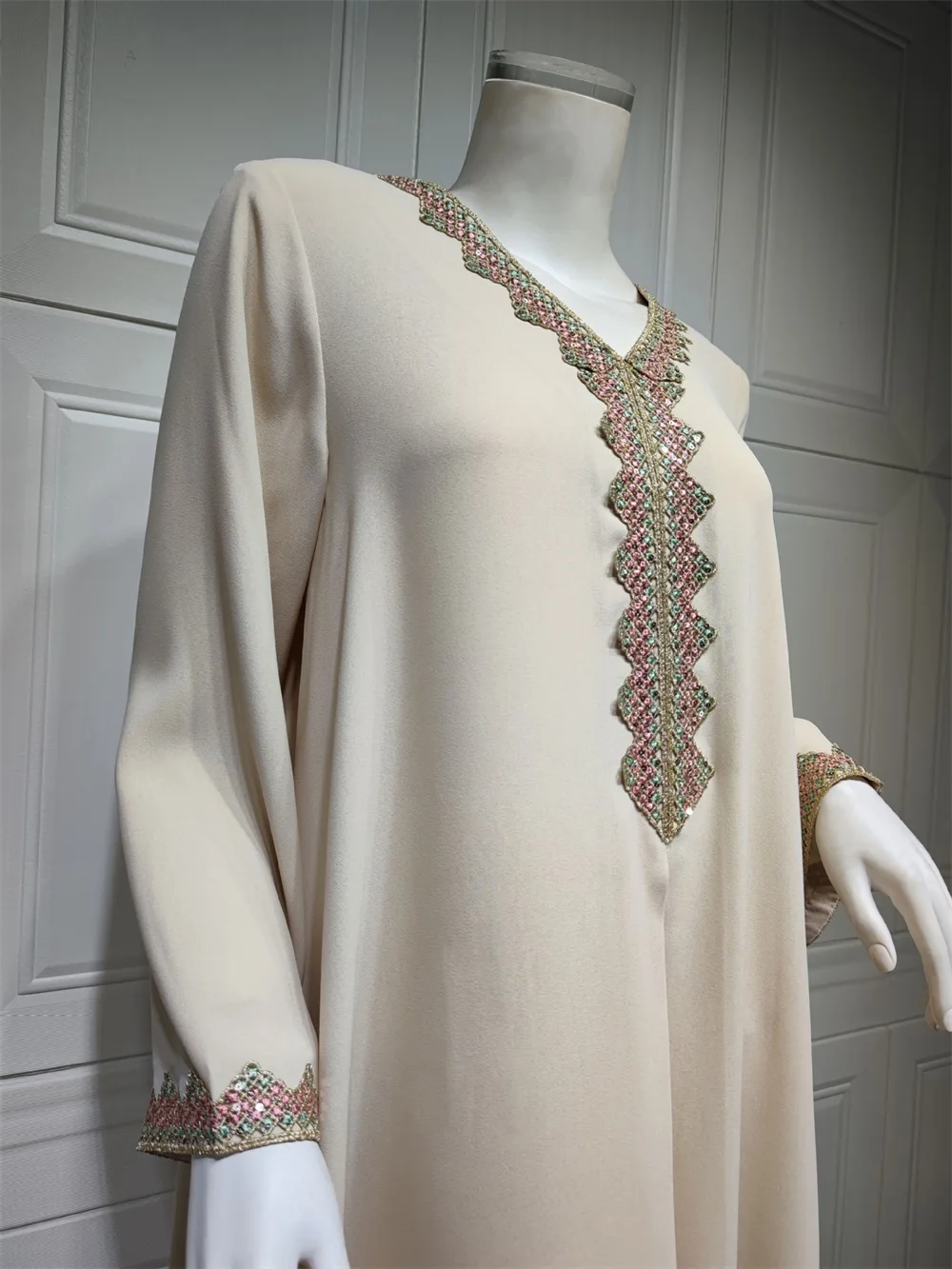 Siskakia Moroccan Women Jalabiyat Fashion Basic Solid Diamonds Full Sleeve V-Neck Elegant Chic Turkish Female Abaya