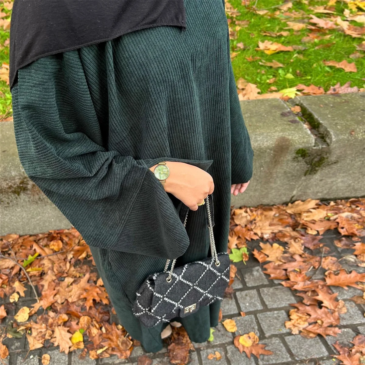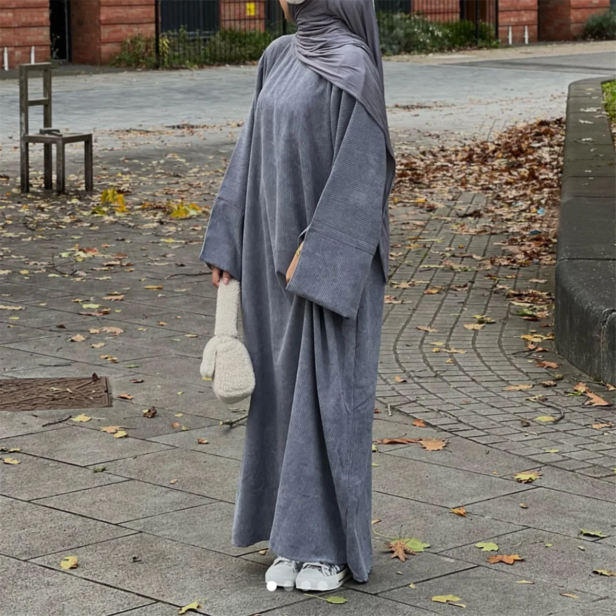 Siskakia Muslim Autumn Winter Corduroy Modest Abaya Turkish Islamic Clothing Jalabiyat Long Sleeve Casual Loose Moroccan Kaftan