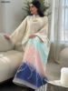 Siskakia Muslim Dubai Fashion Floral Jacquard Gradient Color Elegant Long Dress Moroccan Arab Kaftan Islam Clothing Saudi Abayas