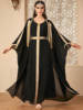 Siskakia Muslim Women Sequins O-Neck Dresses Two Piece Set Women’s Jalabiya Ramadan Clothes Moroccan Dubai Stylish Clothing 2024